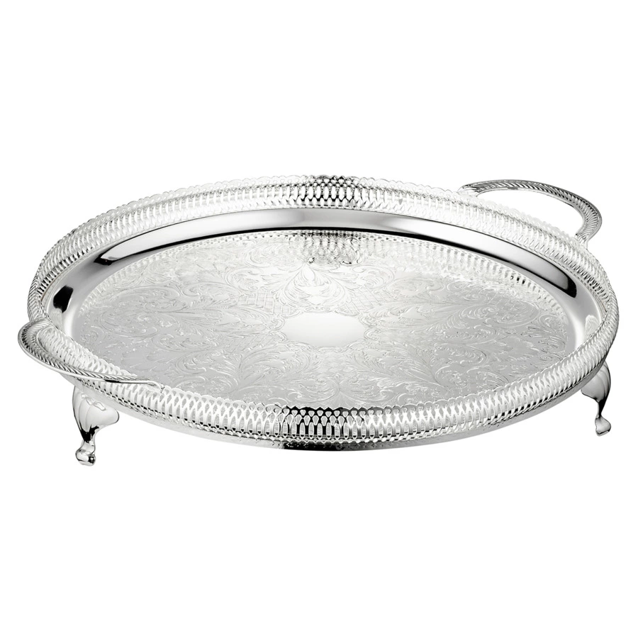 Поднос круглый с ручками на ножках Queen Anne 35,5 см, высокий борт, сталь, посеребрение, 00010627926