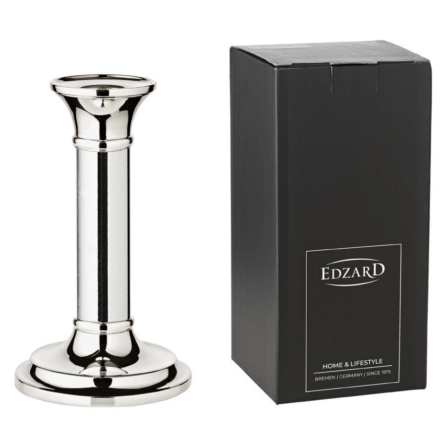 Подсвечник «Фиона» – стильный аксессуар для украшения званого обеда, романтического ужина, интерьера гостиной, столовой или спальни. Особая технология серебряного напыления с защитой от потускнения придает изделию роскошный блеск, который сохраняется на долгие годы. Широкое основание обеспечивает стабильность конструкции и предотвращает от случайного опрокидывания, что особенно важно при использовании живого огня. Дизайн, сочетающий в себе лаконичность и элегантность, делает подсвечники немецкой марки Edzard универсальными – они будут уместны как в классических, так и в современных пространствах.