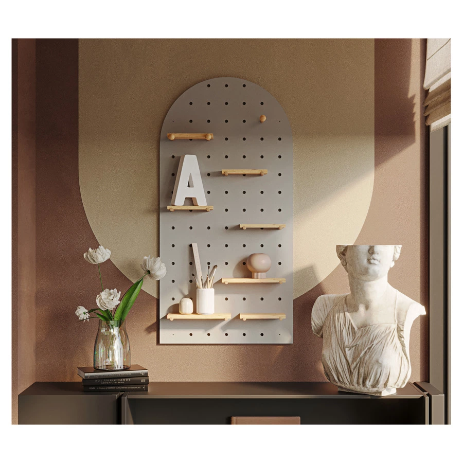 Полка Shely – многофункциональный предмет интерьера, который позволит удобно разместить различные аксессуары: наушники, декор, книги, игрушки, рамки с фотографиями, часы, цветочные горшки, сумки и многое другое. Конструкция предусматривает наличие горизонтальных полок и специальных держателей. Благодаря минималистичному дизайну и нейтральному цветовому решению модель прекрасно вписывается в любое оформление комнаты. Настенный монтаж обеспечивает компактное размещение. Практичные материалы гарантируют изделию износостойкость и долгий срок службы.