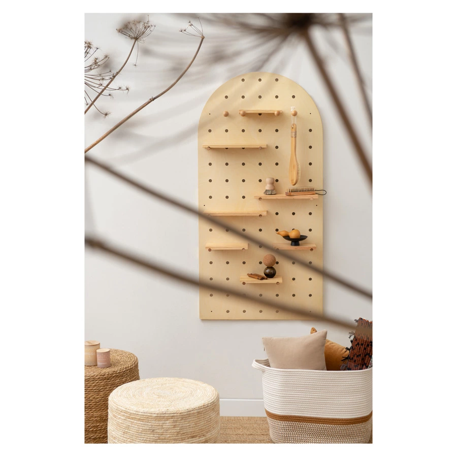 Полка Shely – многофункциональный предмет интерьера, который позволит удобно разместить различные аксессуары: наушники, декор, книги, игрушки, рамки с фотографиями, часы, цветочные горшки, сумки и многое другое. Конструкция предусматривает наличие горизонтальных полок и специальных держателей. Благодаря минималистичному дизайну и нейтральному цветовому решению модель прекрасно вписывается в любое оформление комнаты. Настенный монтаж обеспечивает компактное размещение. Практичные материалы гарантируют изделию износостойкость и долгий срок службы.