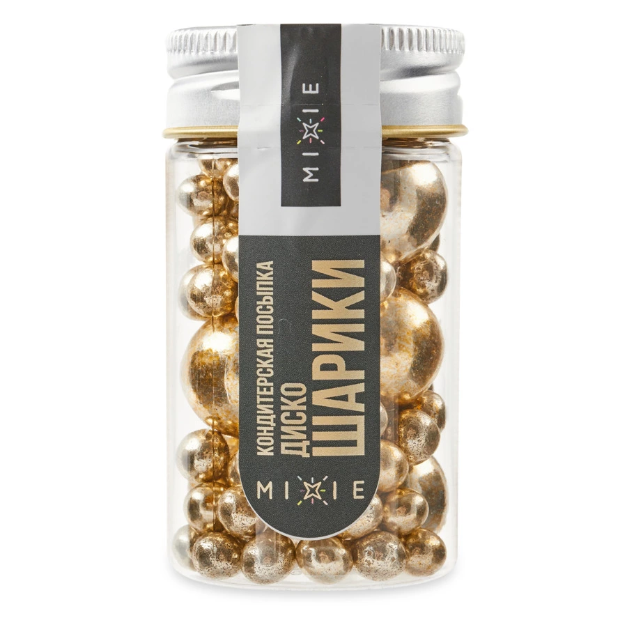Это милое украшение для тортика, домашних капкейков и других сладостей в виде золотых переливающихся диско-шариков.