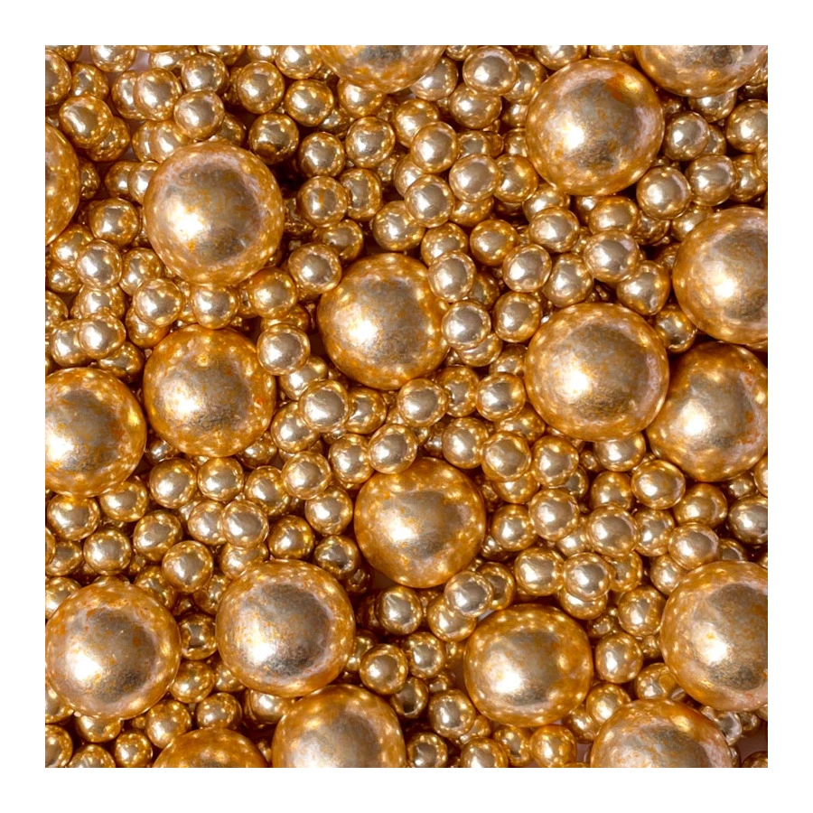 Золотой оттенок шариков будет выигрышно смотреться на тортах как с белой, так и с тёмной глазурью.