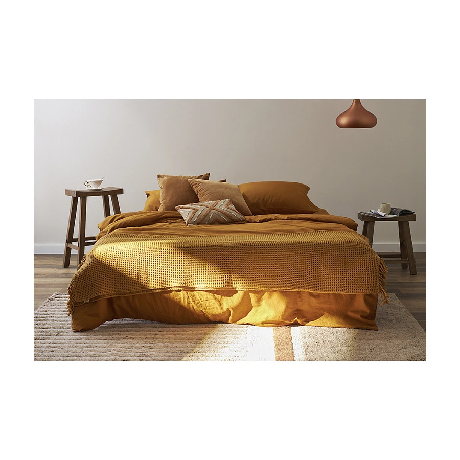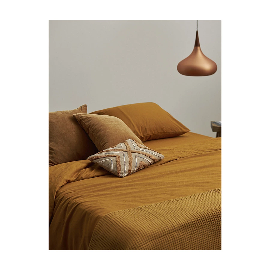 Простыня изо льна и хлопка цвета карри из коллекции Essential – стильное постельное белье высочайшего качества, которое подарит ощущение комфорта во время сна и привнесет в интерьер спальни природную элегантность.