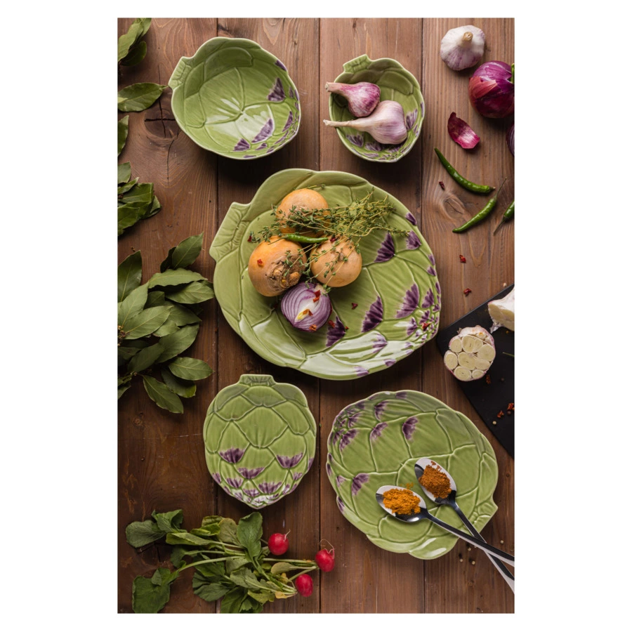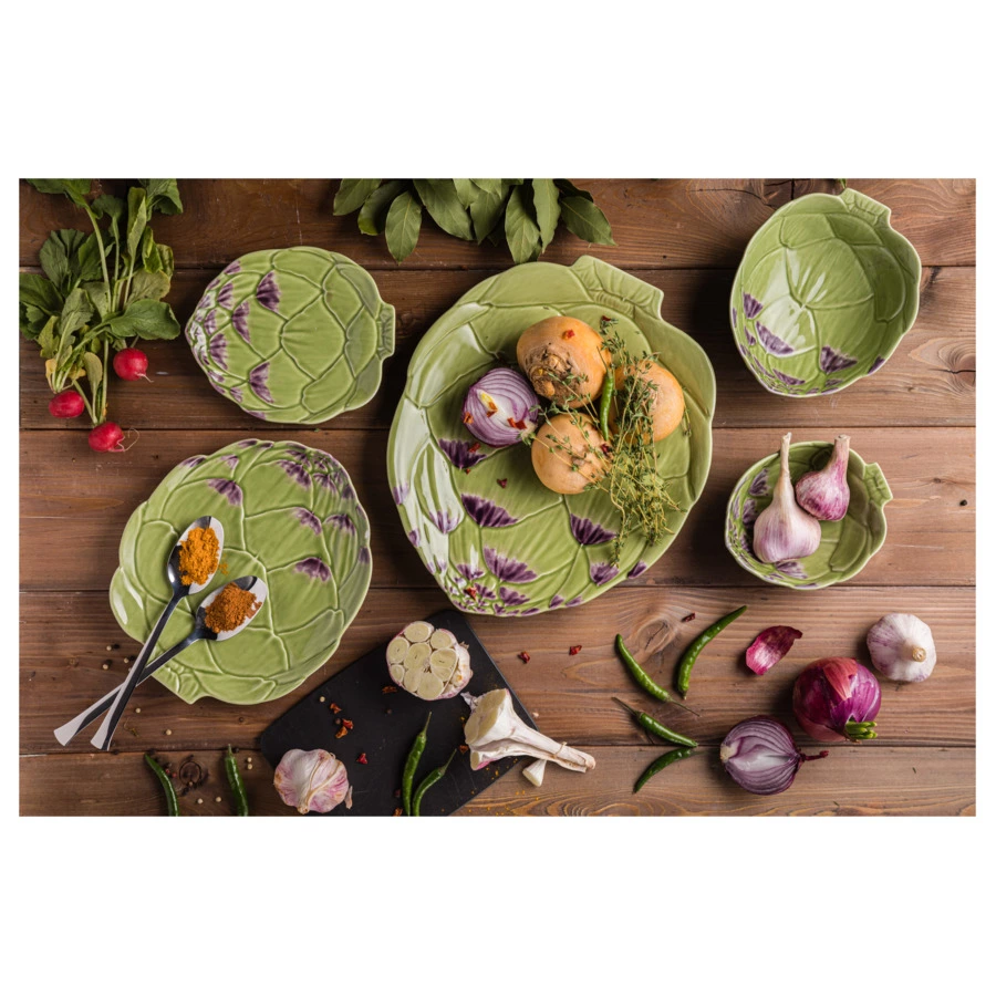 Коллекция «Артишок» является продолжением «овощной» темы в ассортименте Бордало Пинейро. Коллекция уникальна тем, что в ней представлены абсолютно новые утилитарные и декоративные предметы, но при этом сохранена самобытность и историческая идентичность бренда. ДНК Бордало Пинейро прослеживается во всём: в идеальных формах, во внимании к мельчайшим деталям, в ручной росписи и потрясающей натуралистичности «Артишока».