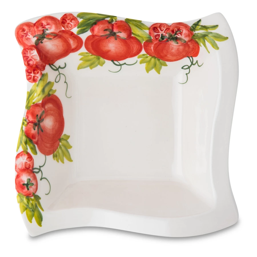Удивите своих гостей нарядной посудой бренда Edelweiss. Каждый предмет коллекции «Томаты» передаёт атмосферу итальянской провинции: уютной, тёплой, аппетитной. Особенность этого салатника — оригинальная квадратная форма с плавными изгибами. Модель украшена объёмным декором и расписана вручную. Размер: 18,0х18,0 см.