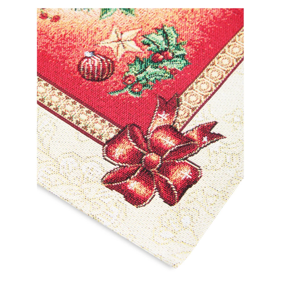 Столовый текстиль с уникальным праздничным дизайном из коллекции «Биг Санта» — сосредоточие новогоднего и рождественского волшебства, живущего буквально в каждой детали. Изысканные сервировочные салфетки и скатерти наполнят ваш дом весельем и ожиданием чуда. Роскошные текстильные изделия от бренда Eurotex сшиты из гобеленового полотна, обладающего высокой прочностью, хорошей устойчивостью к механическим повреждениям и долговечностью. Приятный на ощупь текстиль предназначен для повседневного использования, он не дает усадку и не деформируется. Рисунок, образующийся при переплетении разноцветных нитей, сохраняет яркость и насыщенность даже после многочисленных стирок.