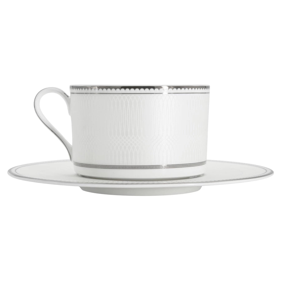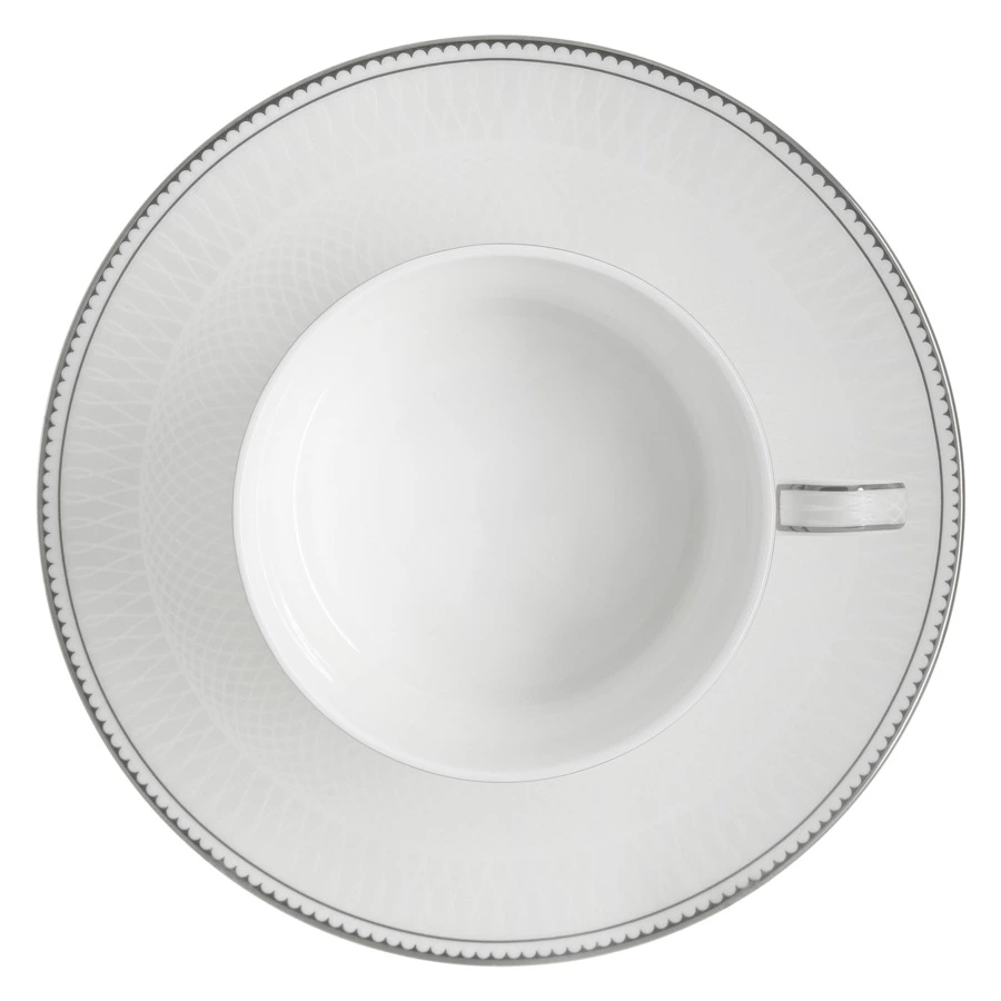 Серебряная резная отводка по краю придаёт предметам коллекции благородный вид.