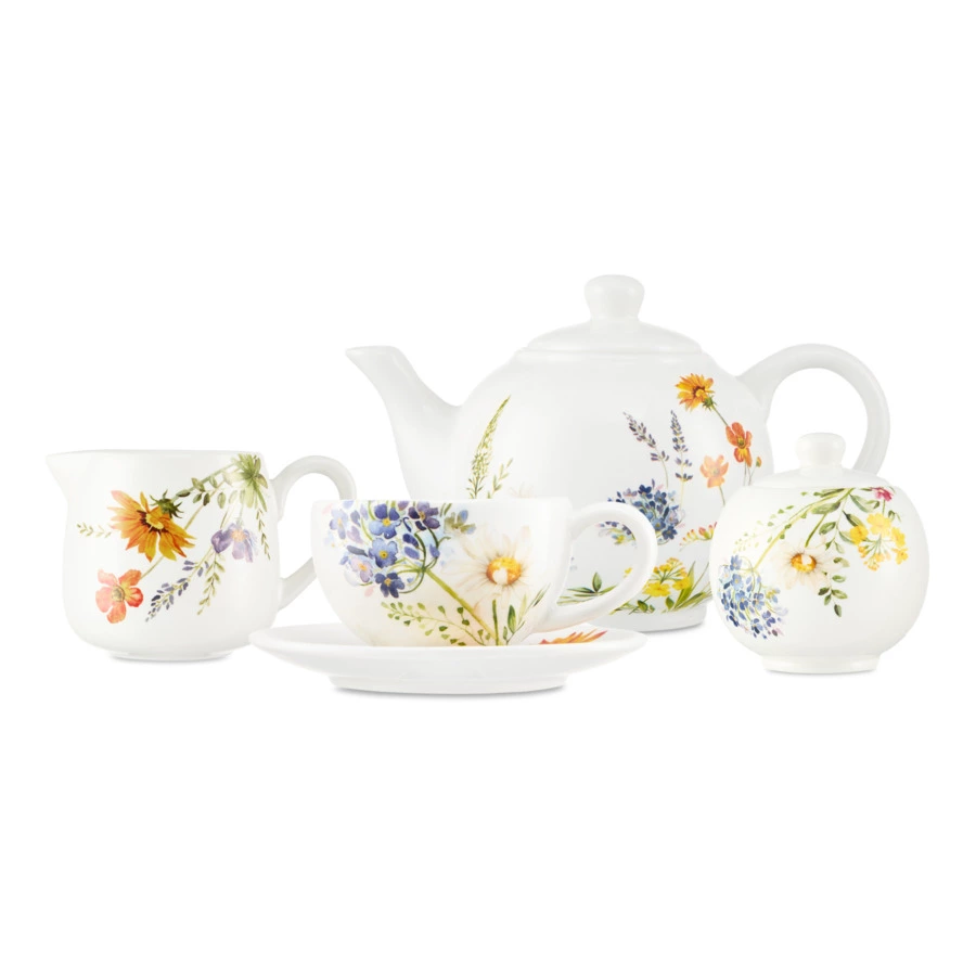 Сервировка с коллекцией керамической посуды «Полевые цветы» от Decor de table даже серый будний день превратит в настоящий праздник. Удивительно тонкая работа, великолепное качество, гармоничное сочетание белого оттенка и яркого красочного декора делают каждое изделие непревзойденным творением. Растительные мотивы, так любимые художниками с давних времен, сегодня как никогда актуальны. Цветочный рисунок с филигранной точностью воспроизводит мельчайшие детали изящных полевых цветов. Они, словно разноцветные брызги радостного солнечного лета, дарят ощущение тепла и благополучия.