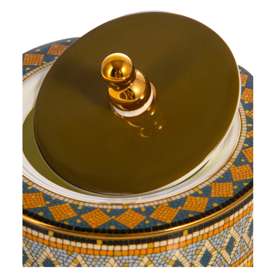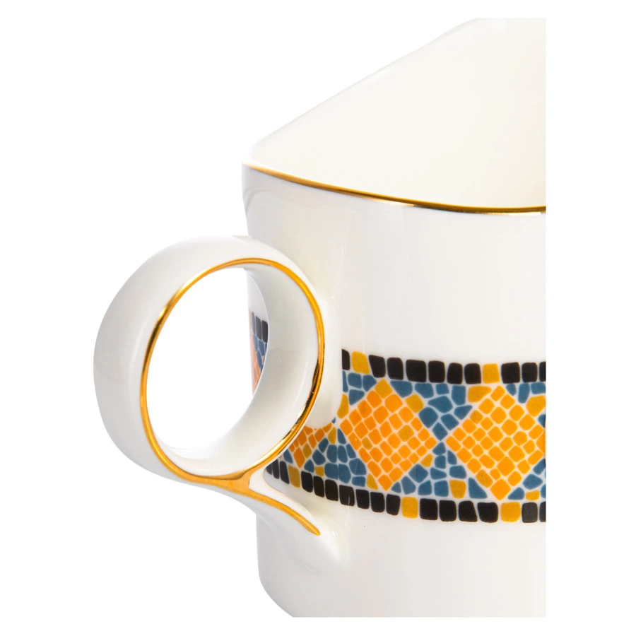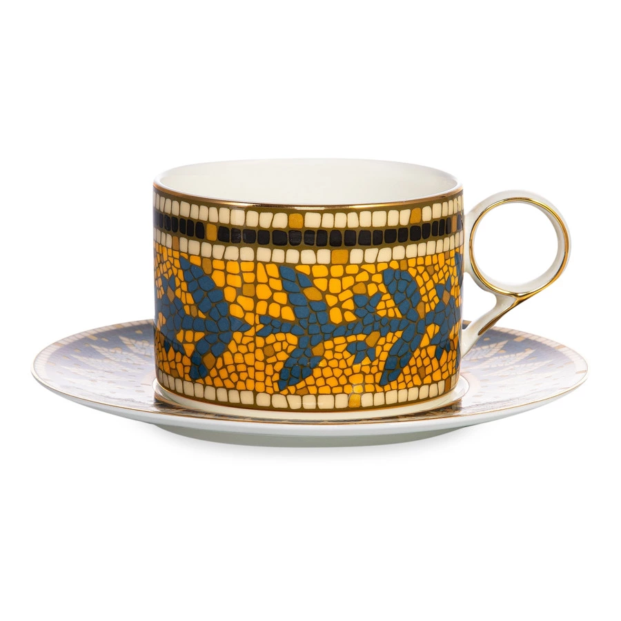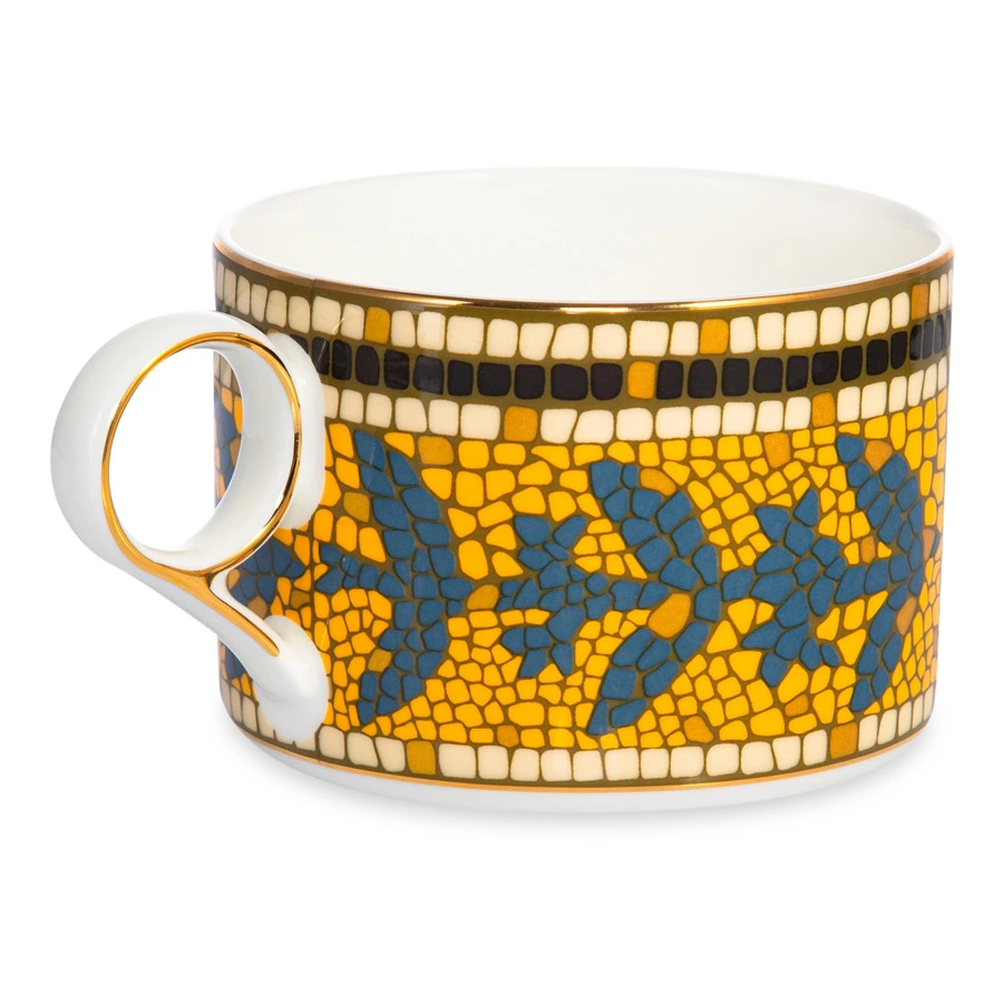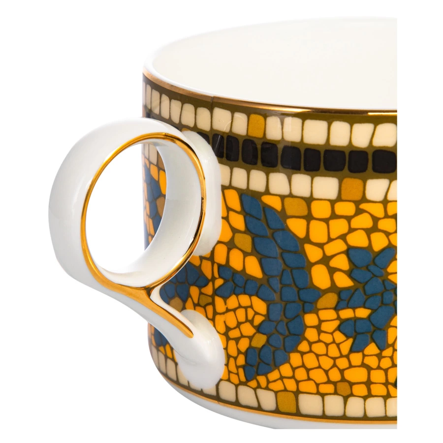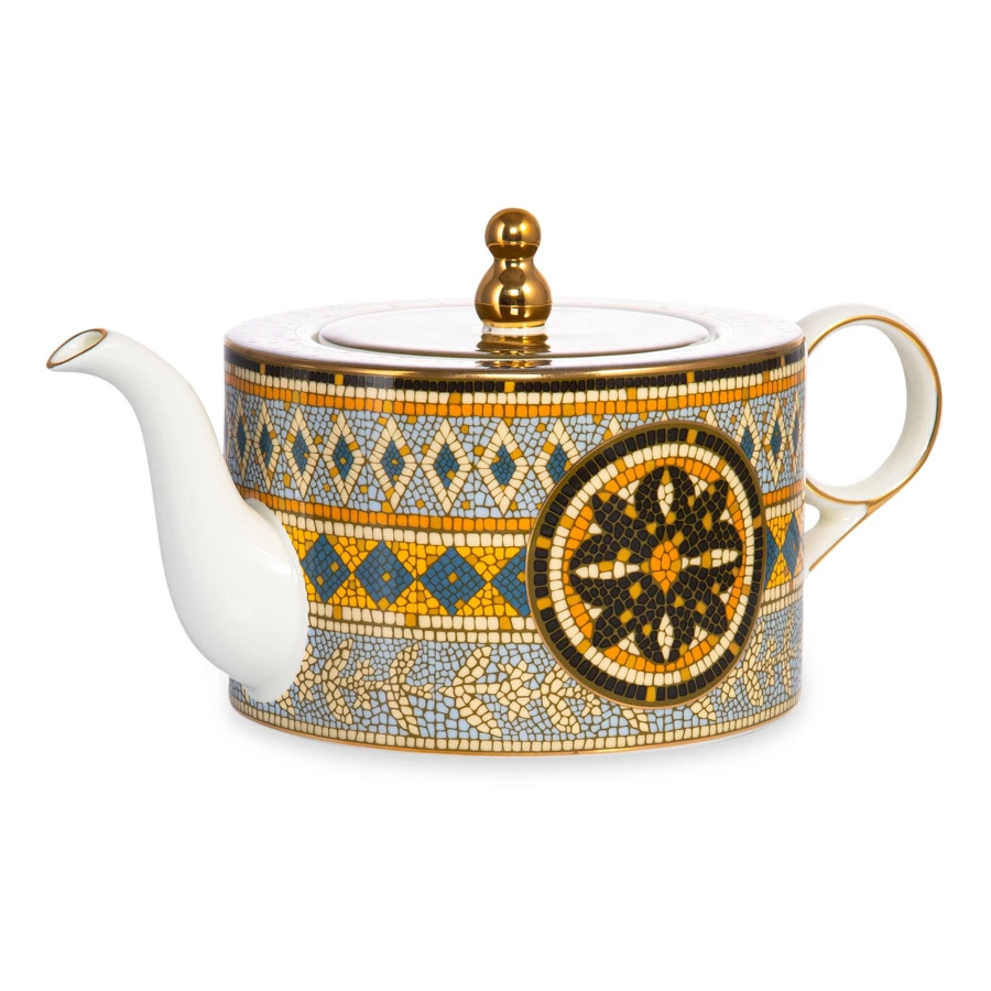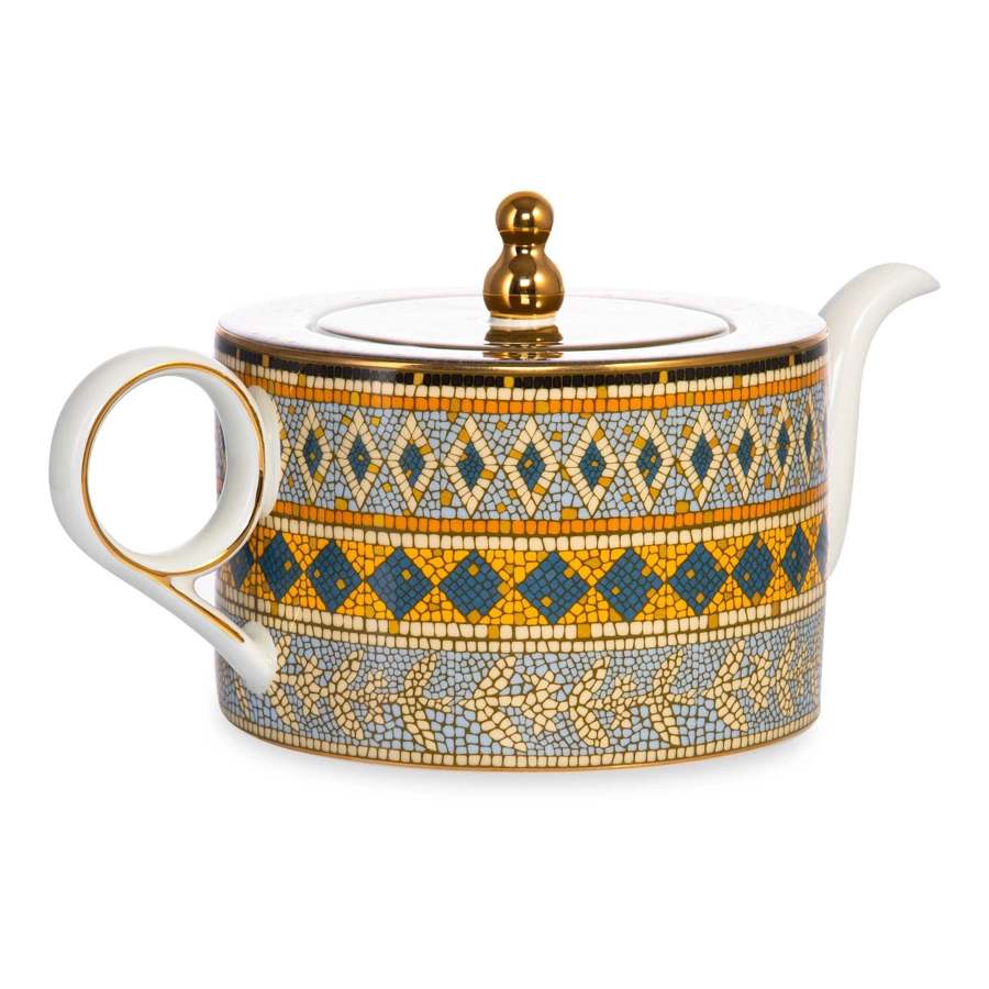 Чайный набор из серии «Олимп» — это достойное пополнение коллекции посуды и стильный подарок на свадьбу или новоселье. Предметы изготовлены из твёрдого фарфора высшего сорта и украшены эффектным декором. Геометрический орнамент, напоминающий мозаику – настоящая находка дизайнеров бренда Mix&Match Home. Золотая отделка деликатно подчёркивает необычное оформление. Многоэтапный обжиг обеспечивает долговечность и чёткость рисунка, сохраняет насыщенность красок. Сервиз с ярким дизайном приятно удивит гостей, создавая за столом особенную атмосферу.