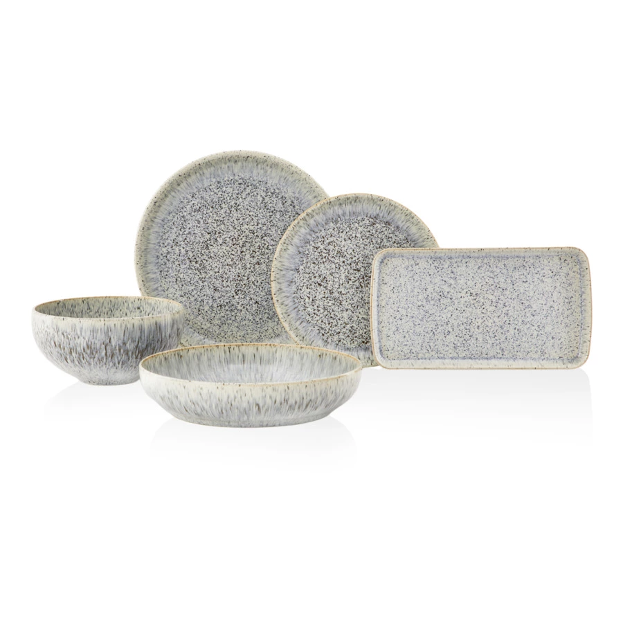 Коллекция «Сияние» от бренда Denby отличается лаконичным дизайном и необычной текстурой. Изделия серии созданы с использованием уникальной техники глазурования, которая придает каждому предмету неповторимый декор. Базовый серый цвет – универсальный. Посуда, выполненная в нейтральном оттенке, отлично подойдет для подачи ярких блюд и традиционных сервировок. Изделия изготовлены из натуральной глины, добываемой на собственных карьерах английской компании. Краски, используемые при оформлении предметов, и экологичная износостойкая глазурь также имеют естественное происхождение.