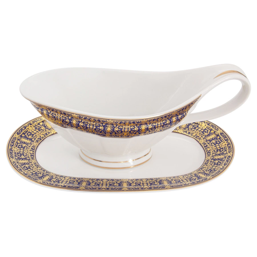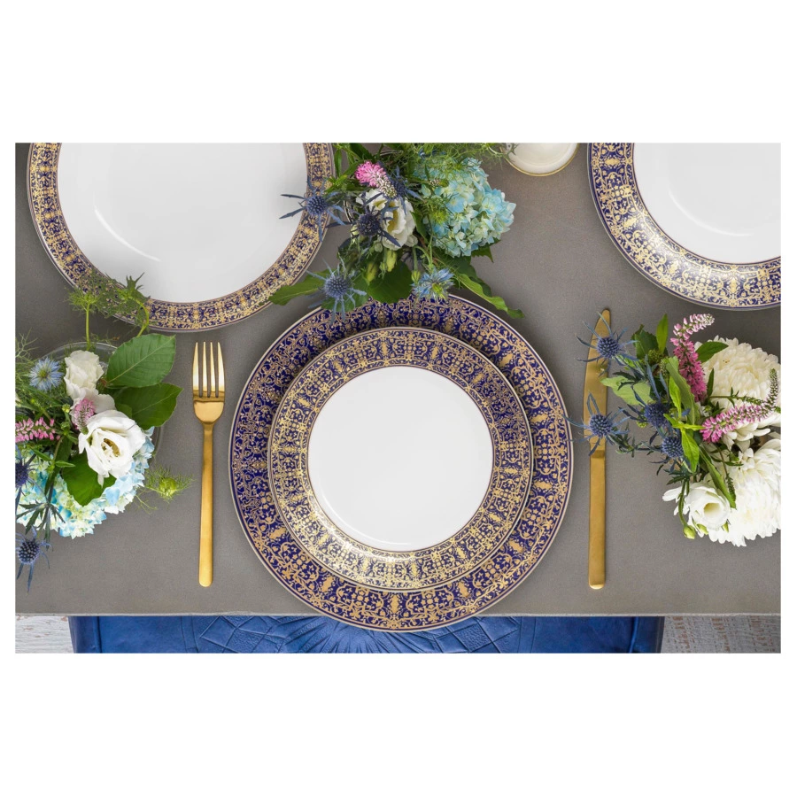 В богатом декорировании золотом на насыщенном кобальте прослеживается влияние стиля Ренессанс, который легко вписывается в любой интерьер и придаёт сервизу парадность.