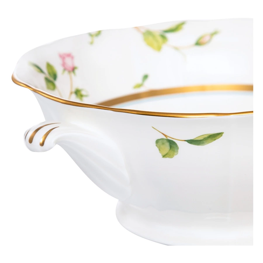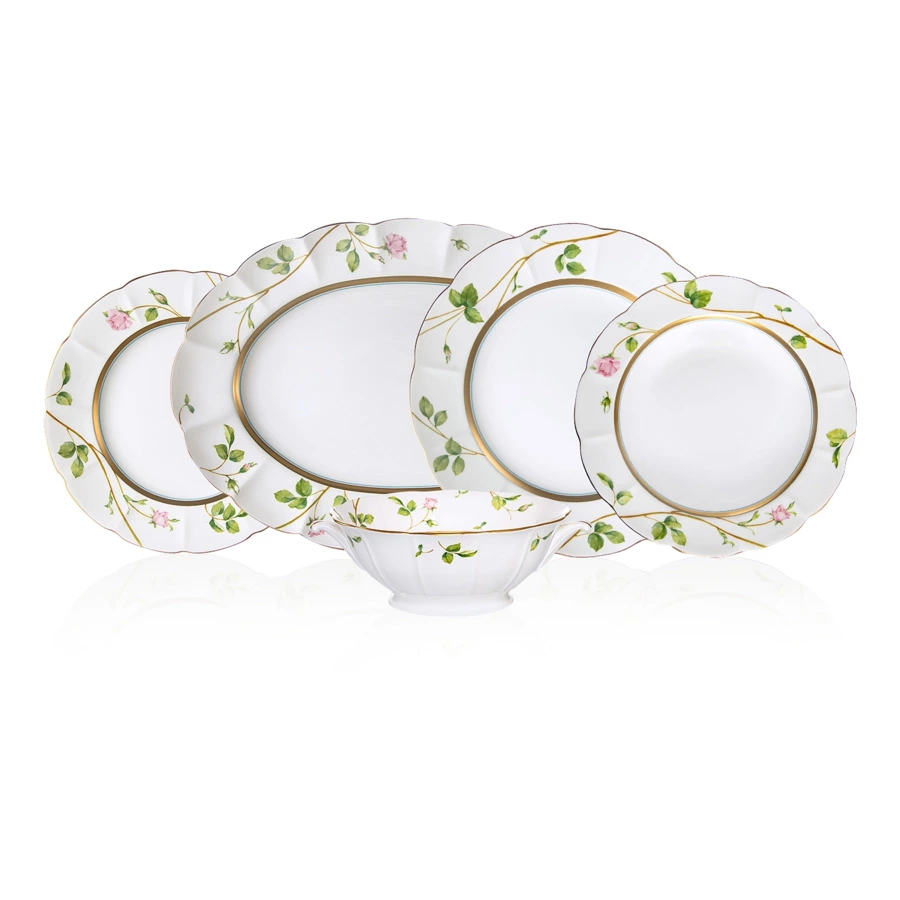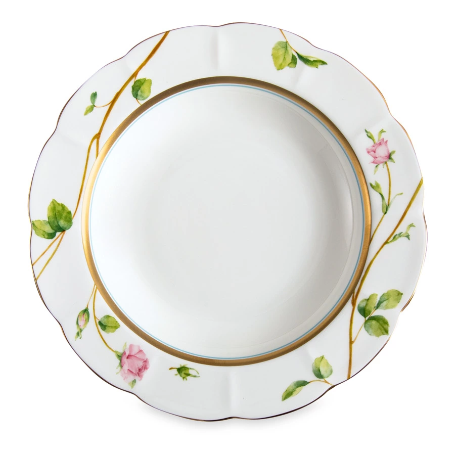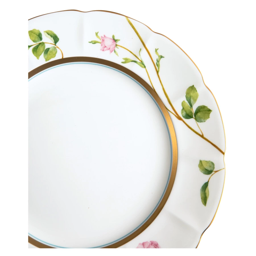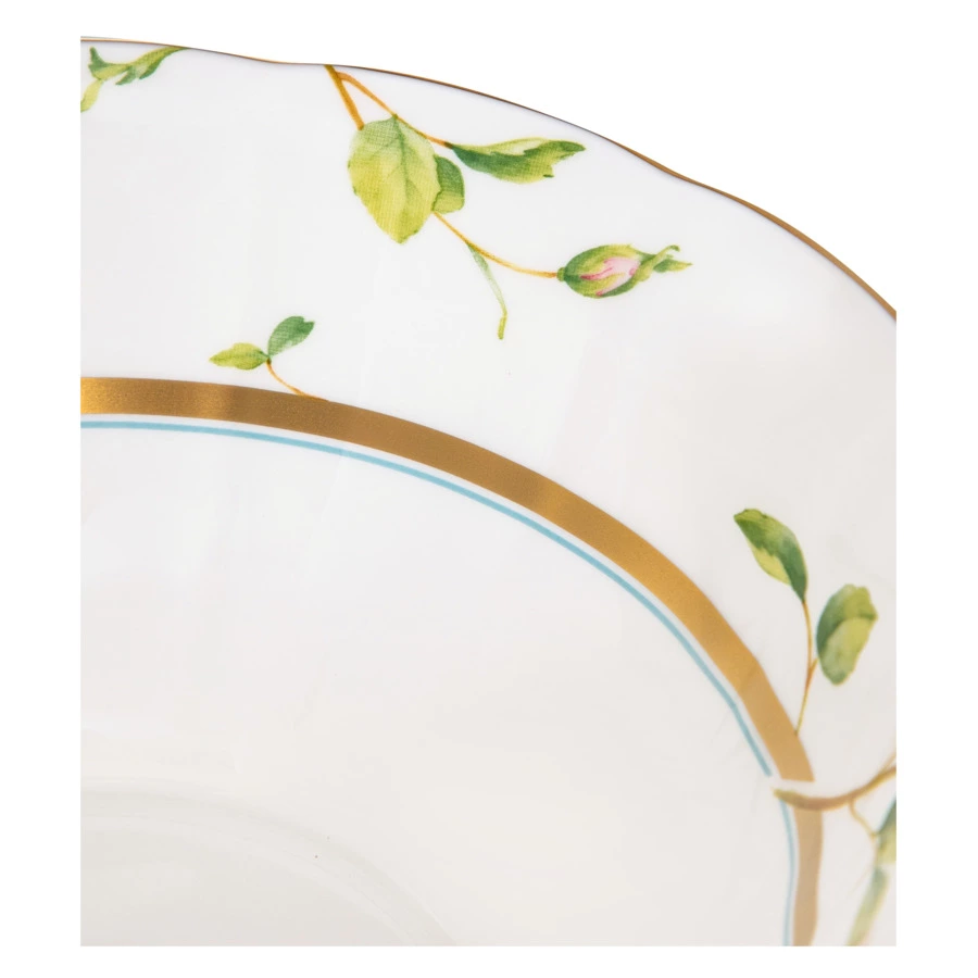 Коллекция «Цветущая роза» в классическом английском стиле разработана с учётом современных тенденций. Нежные вьющиеся розы на элегантном белом фарфоре стали уже классикой столовых сервизов, но не утратили свою актуальность. Серия вдохновляет и ботаническим искусством исполнения, и натуральным цветом декора. Форма распустившегося цветка придаёт предметам особое очарование. Сложно найти что-то более совершенное, обладающее столь отточенным стилем. Изящная форма с золотой каймой и нежный цветочный рисунок сделают сервировку вашего стола элегантной и изысканной. Благодаря великолепному дизайну и высококачественному исполнению эта посуда станет изумительным подарком.