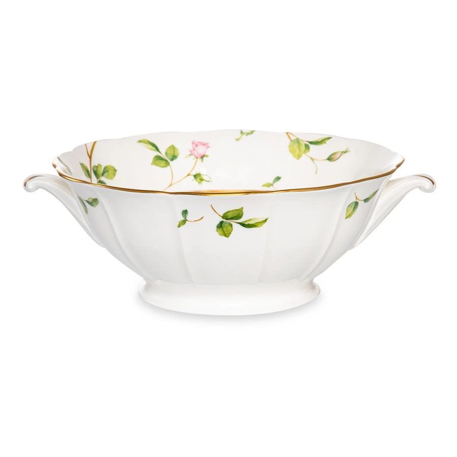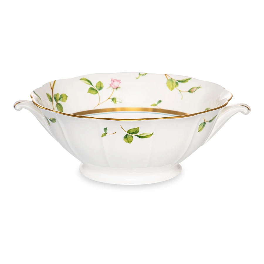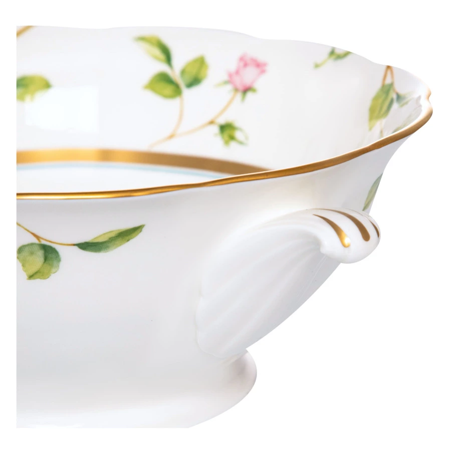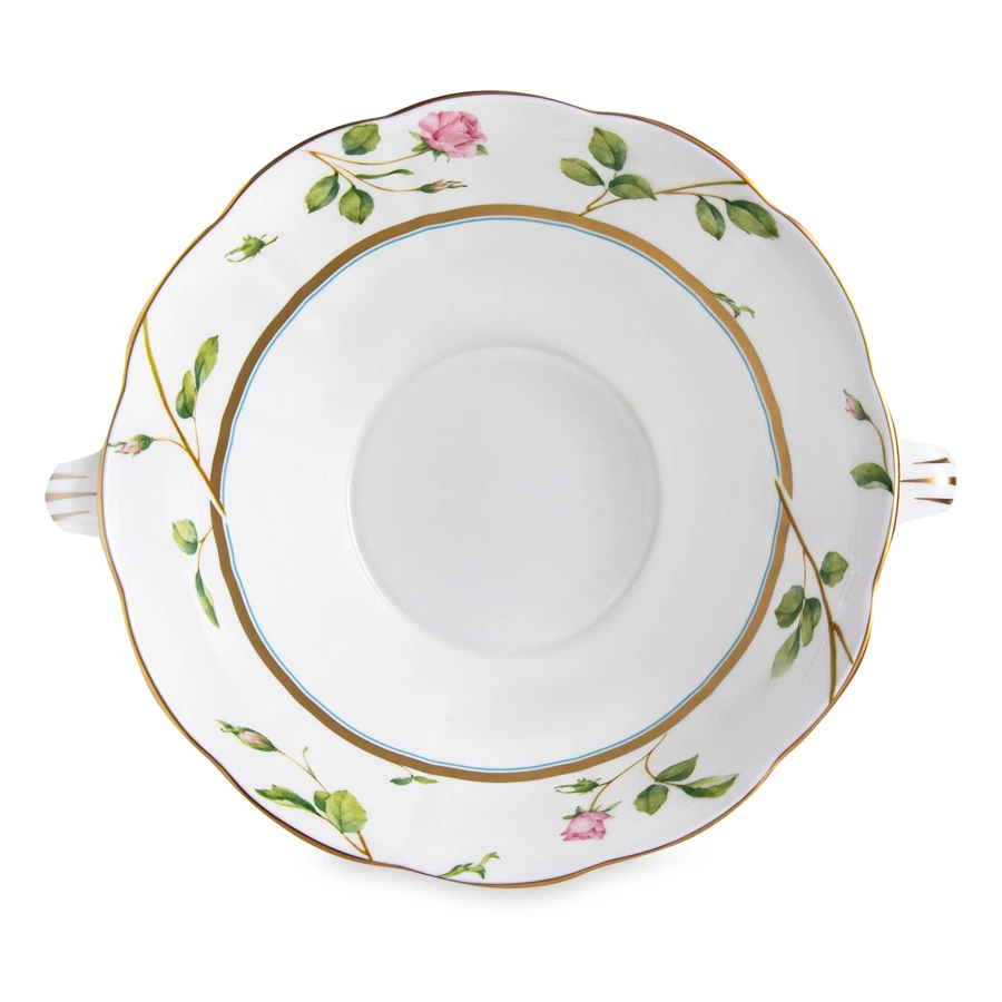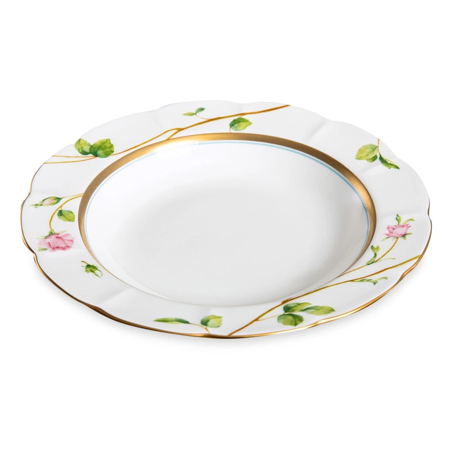 Коллекция «Цветущая роза» в классическом английском стиле разработана с учётом современных тенденций. Нежные вьющиеся розы на элегантном белом фарфоре стали уже классикой столовых сервизов, но не утратили свою актуальность. Серия вдохновляет и ботаническим искусством исполнения, и натуральным цветом декора. Форма распустившегося цветка придаёт предметам особое очарование. Сложно найти что-то более совершенное, обладающее столь отточенным стилем. Изящная форма с золотой каймой и нежный цветочный рисунок сделают сервировку вашего стола элегантной и изысканной. Благодаря великолепному дизайну и высококачественному исполнению эта посуда станет изумительным подарком.