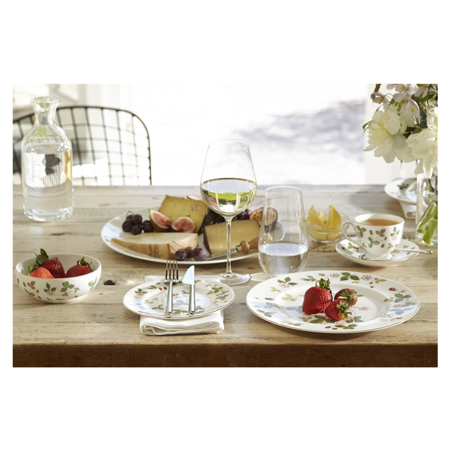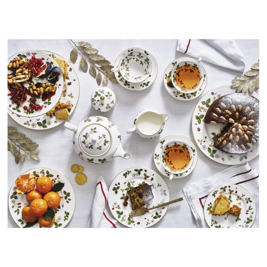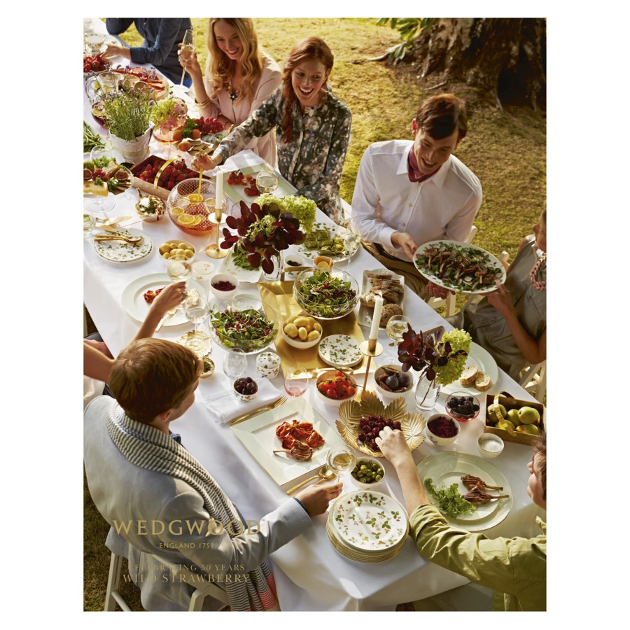 Дизайн коллекции «Земляника» был разработан еще в 1964 году и давно стал классикой, благодаря чему современная версия имеет винтажное очарование, сочетающееся с наивным романтизмом. Серия посуды Wild Strawberry переносит нас в английский сад, где аромат свежей травы смешивается со сладкими нотами ягод. Жаркое солнце заставляет искать укрытия в тенистой беседке, где расположился плетёный стол и кресло, предлагающие насладиться традиционным послеобеденным чаем. Классические формы в сочетании с очаровательным декором и золотой отделкой делают посуду британского бренда Wedgwood прекрасным спутником приятного времяпрепровождения.