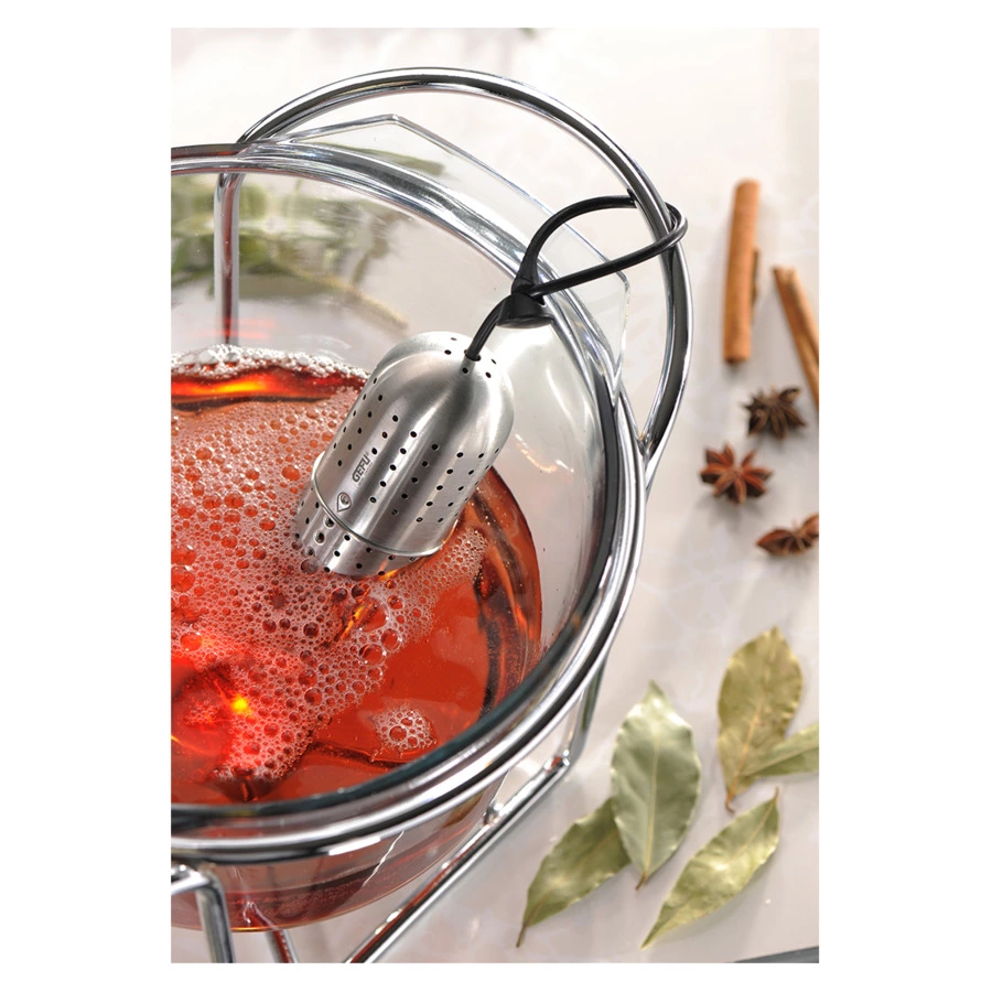 Сито предназначено для придания вашим фирменным блюдам аромата и вкуса специй и трав. Микрофильтры ситечка позволяют быстро придать супу, жаркому, рагу насыщенный вкус, не пропустив специи наружу. Сито подходит для использования перца горошком, лаврового листа и других приправ. Специальный силиконовый крючок легко крепится к краю кастрюли или казана и удерживает сито от падения. Разбирается на две половинки для удобства ухода за ситом. Рекомендуется мыть вручную моющими средствами, не царапающими поверхность.