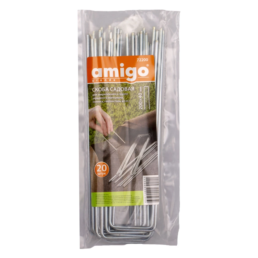 Скоба садовая для укрывного материала Amigo 4х20 см, 20 шт, сталь углеродистая, 00010747585
