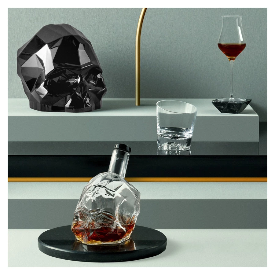 Стакан для виски из серии «Мементо Мори» от Nude Glass внесёт в процесс наслаждения терпким напитком люксовую эстетику. Модель выполнена из бессвинцового хрусталя, обладающего уникальной кристальной прозрачностью и характерным продолжительным звоном. Наклонный силуэт демонстрирует красоту и гармонию асимметрии. Дно декорировано эффектной гравировкой в виде черепа.