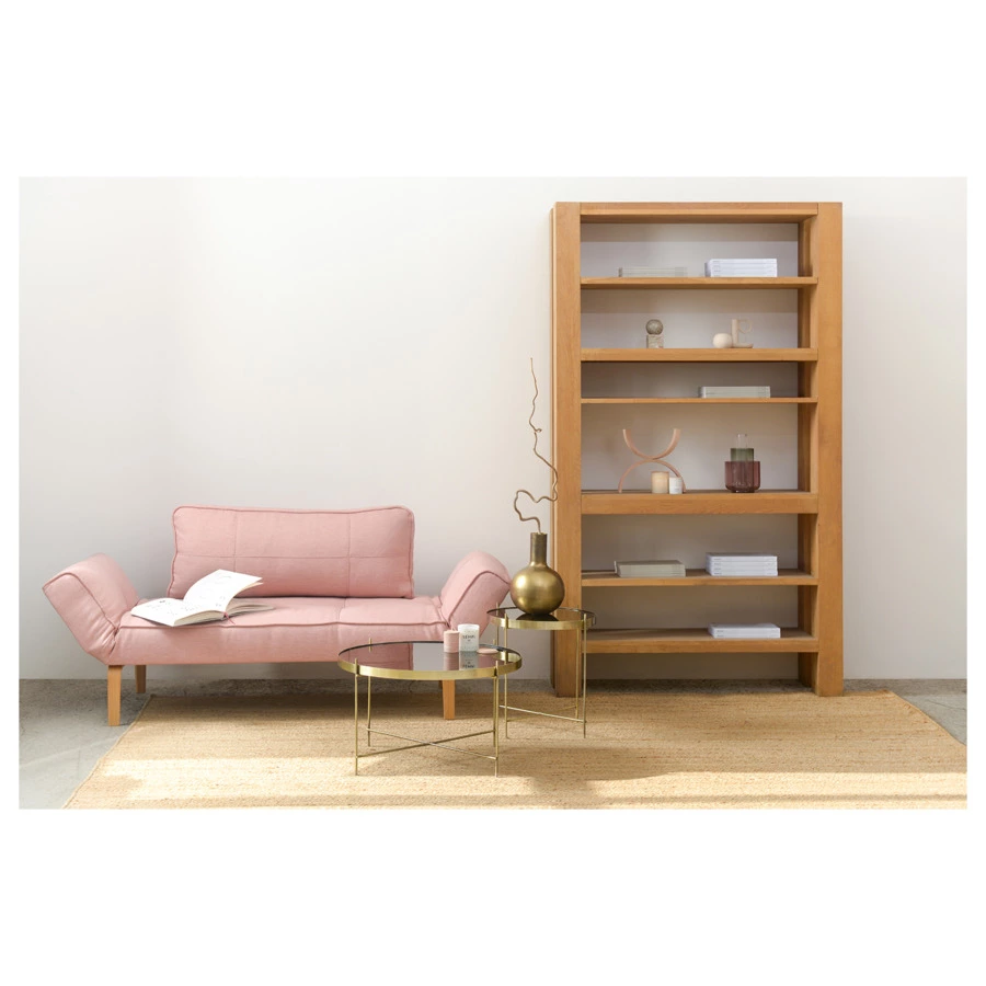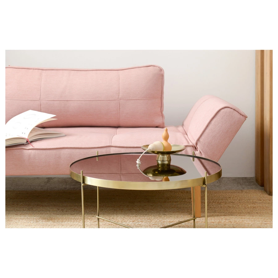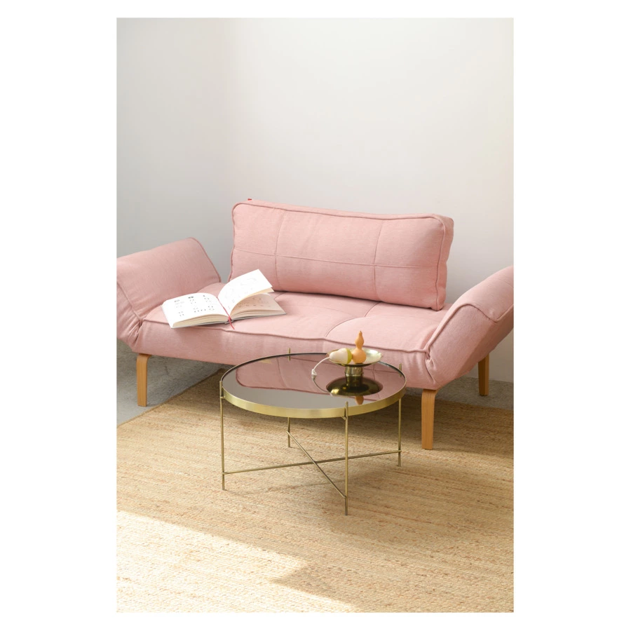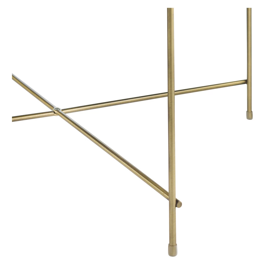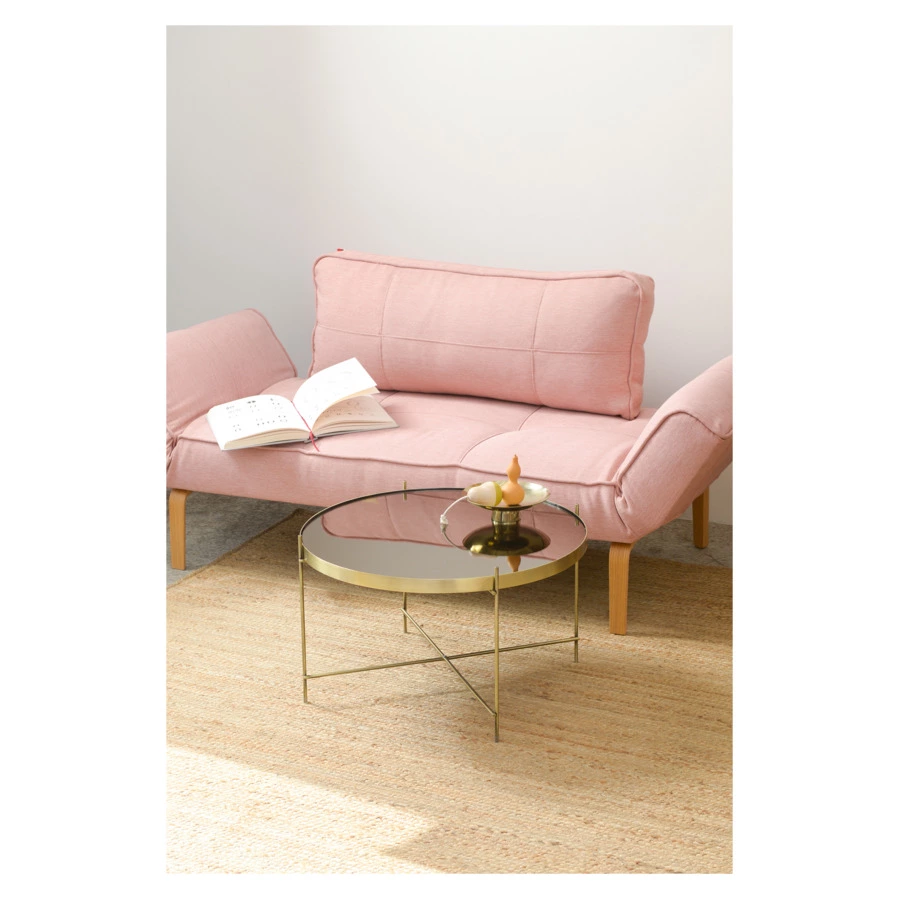 Материалы: столешница – коричневое зеркало, каркас – сталь с латунным напылением. Размеры: диаметр – 64,4 см, высота – 38 см.