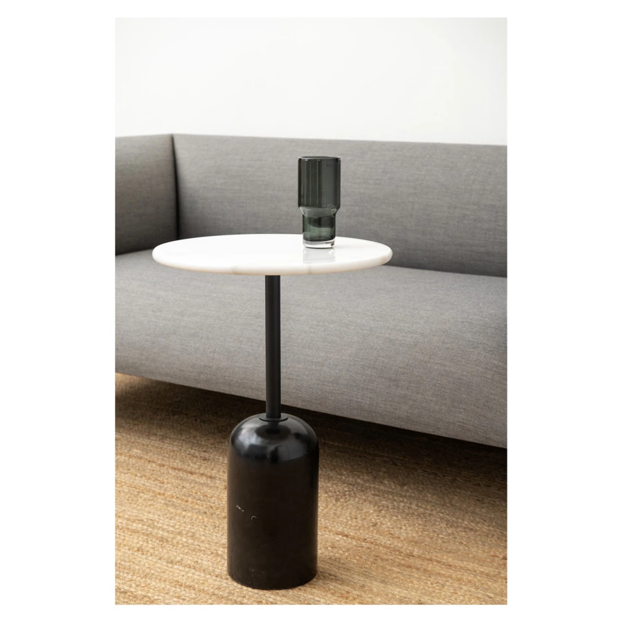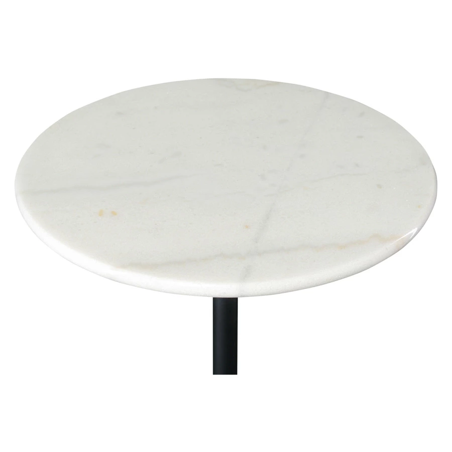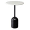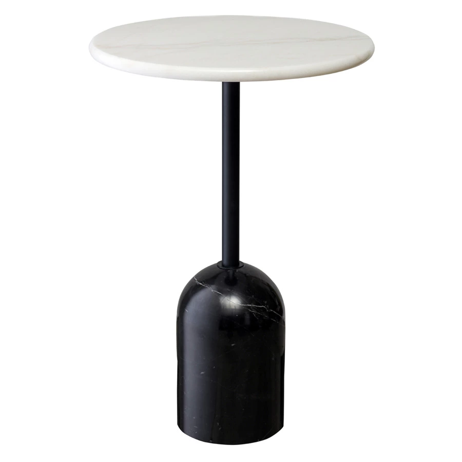 Материалы: столешница и основание – натуральный мрамор, ножка – нержавеющая сталь. Максимальная нагрузка - 15 кг. Диаметр: 40 см. Высота: 59 см. Цвет: белый/черный.