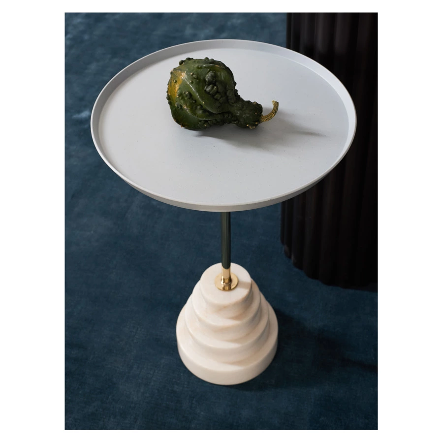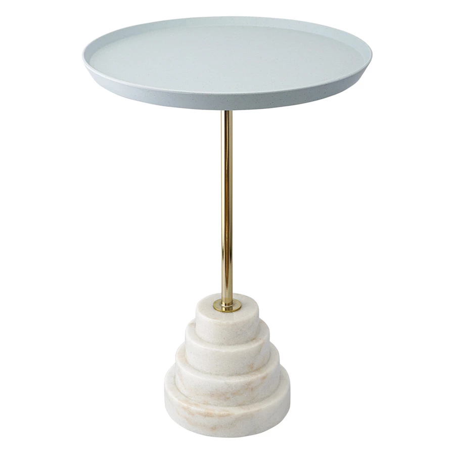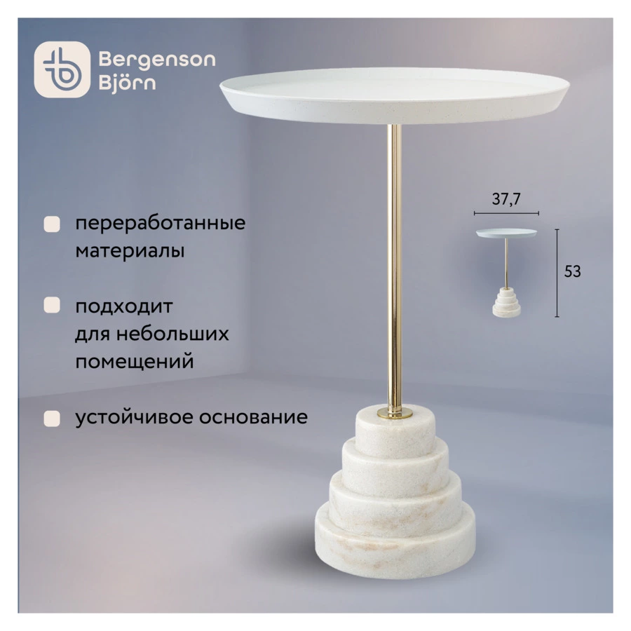 Материалы: столешница – переработанный материал, каркас – сталь, основание – мрамор. Размеры: 37,7х37,7х53 см. Цвет: серый/белый.