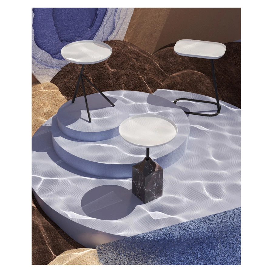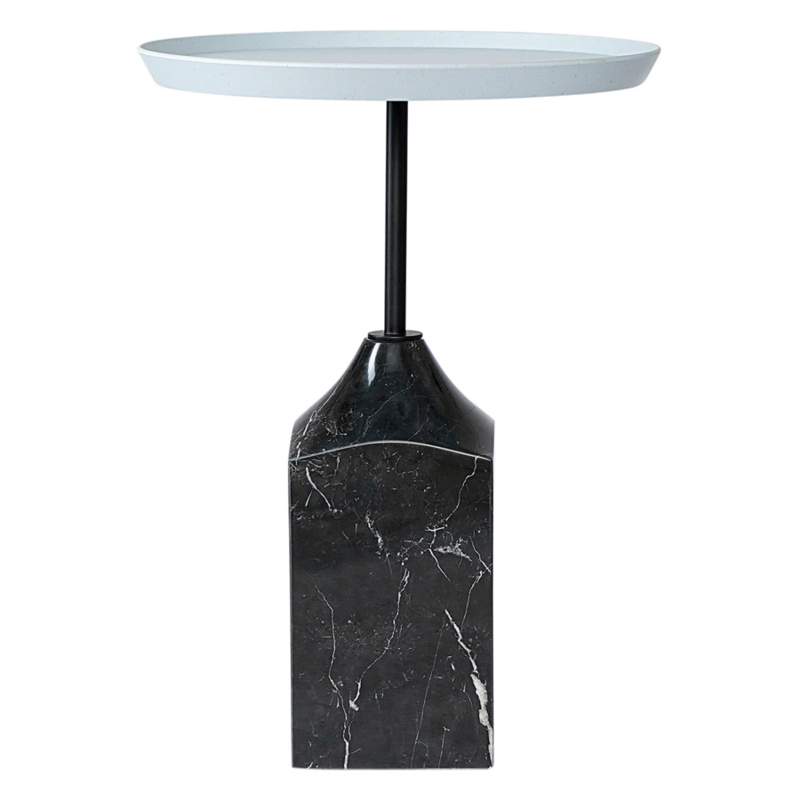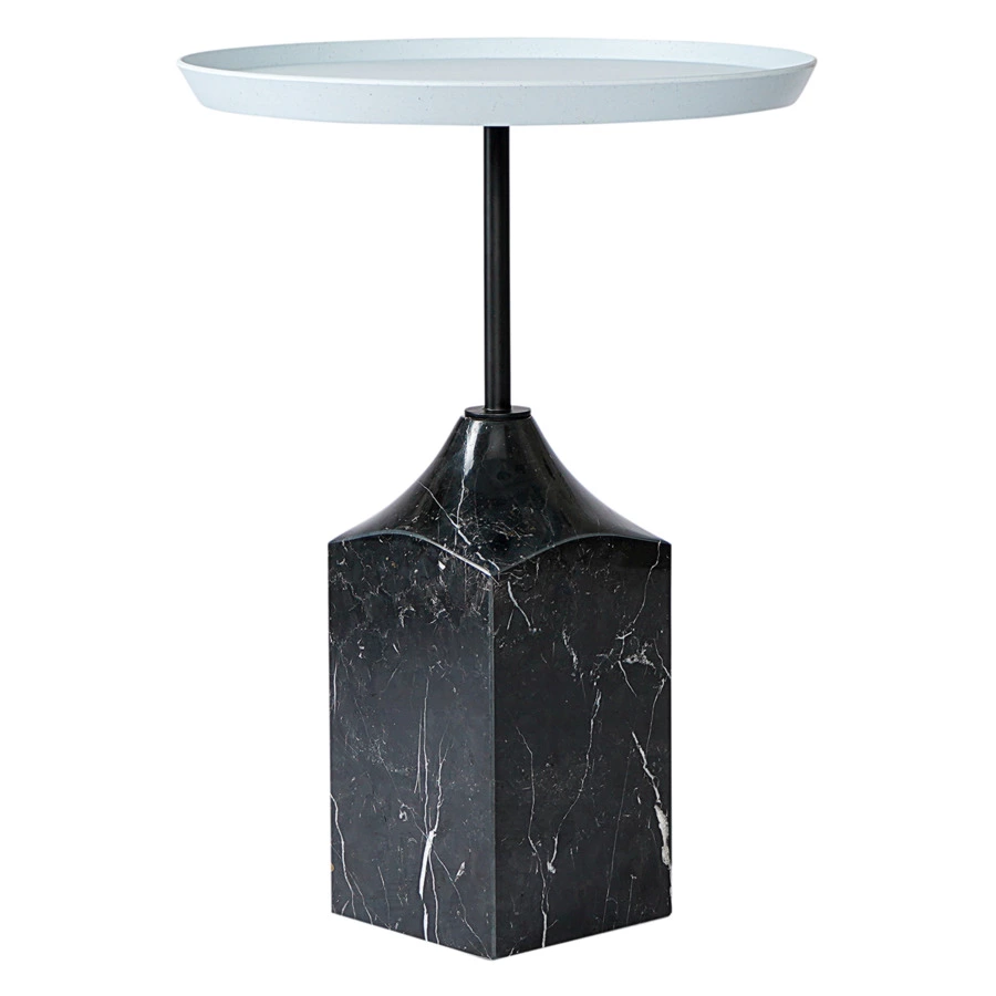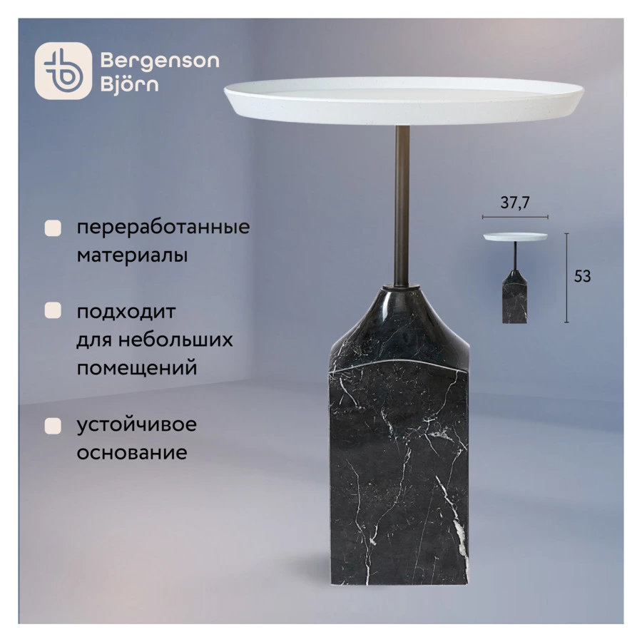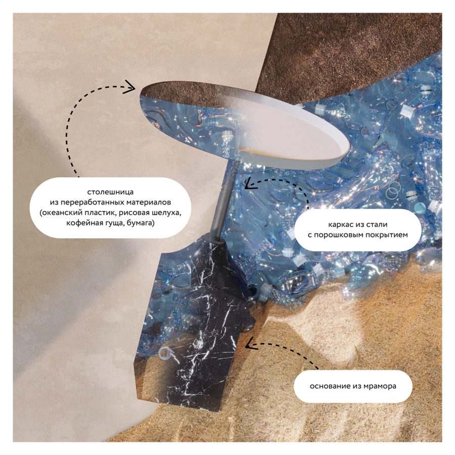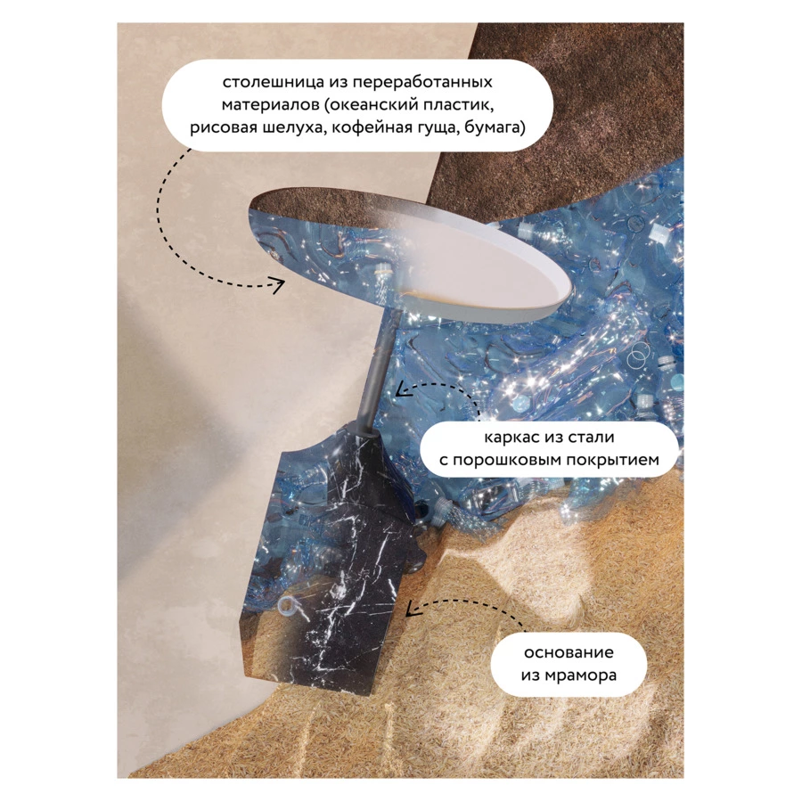 Материалы: столешница – переработанный материал, каркас – сталь, основание – мрамор. Размеры: 37,7х37,7х53 см. Цвет: серый/черно-белый.