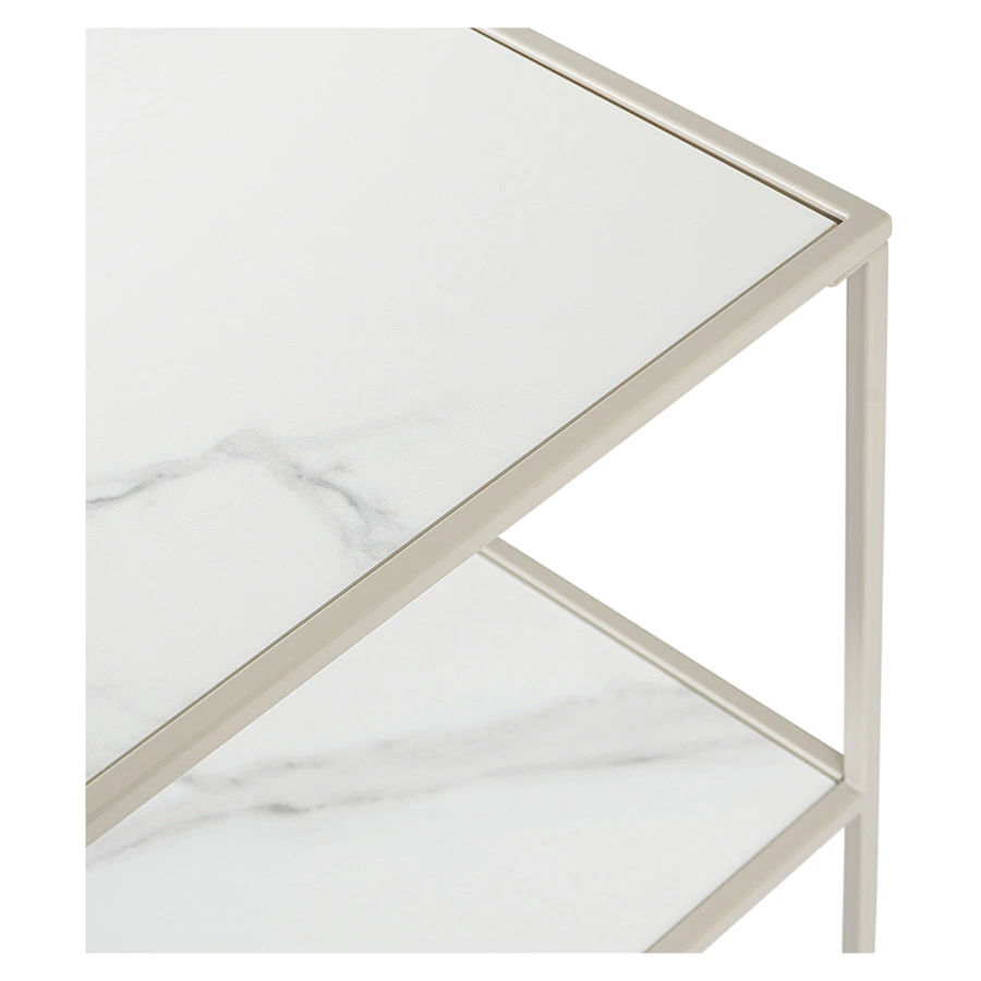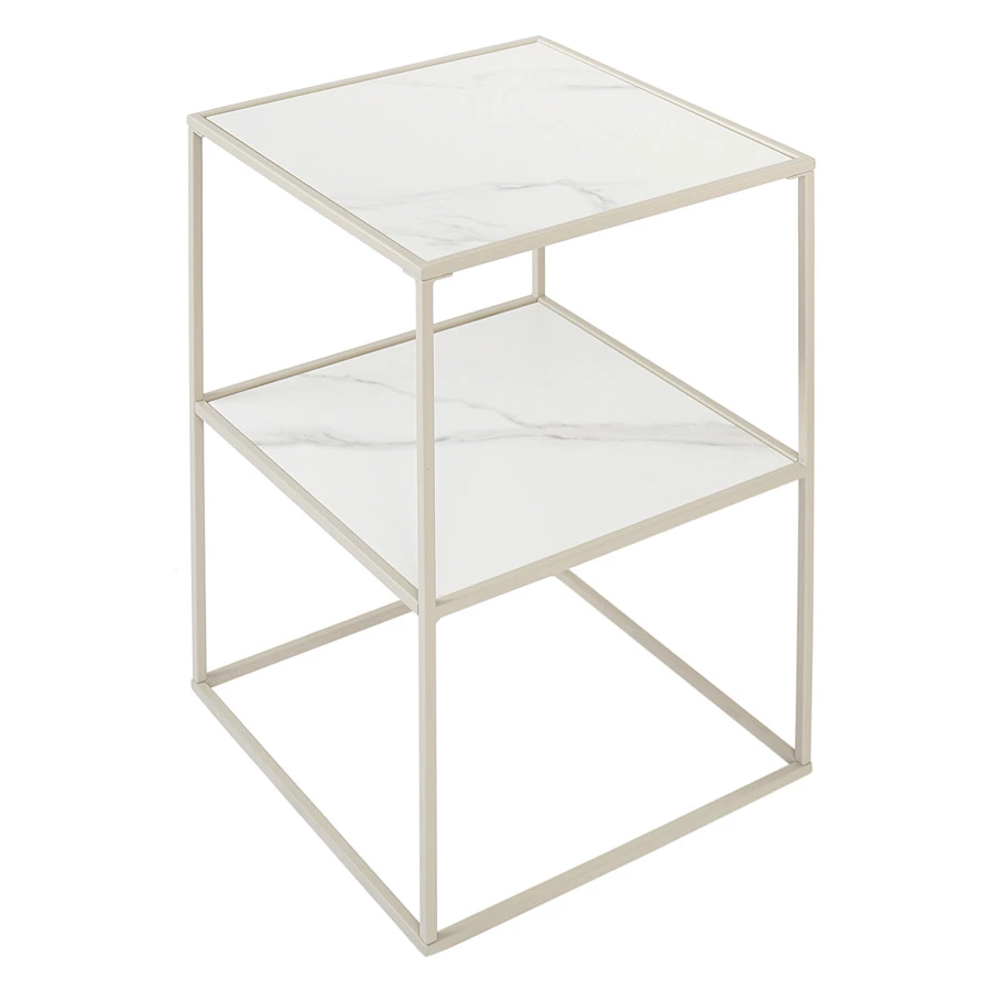Материалы: столешница – керамика, каркас – сталь. Размеры: 38х38х52 см. Цвет: бежевый.