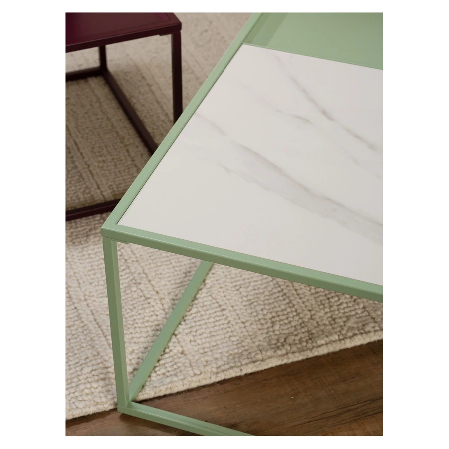 Материалы: столешница – углеродистая сталь, керамика; каркас – сталь с порошковым покрытием. Размеры: 110х50х37 см. Цвет: белый/зеленый.
