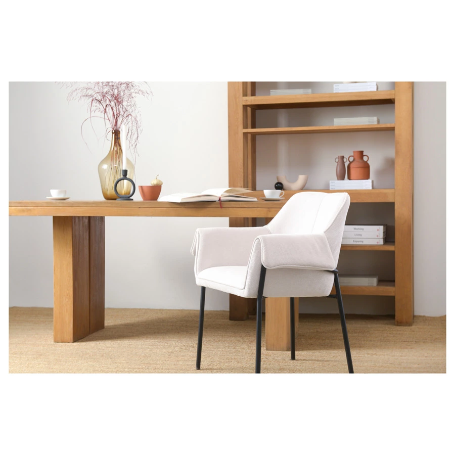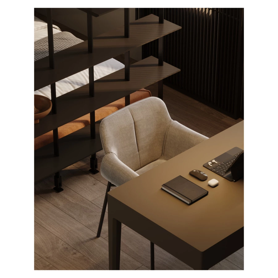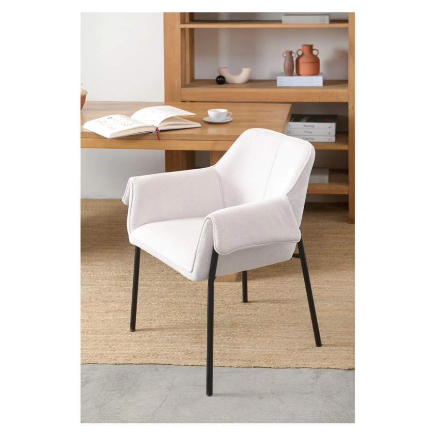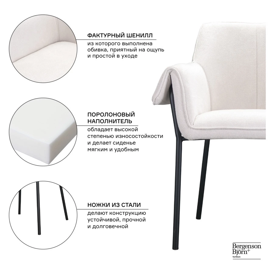 Стул Aline с обивкой из фактурного шенилла выглядит уютно и в то же время благородно. Материал приятный на ощупь и простой в уходе. Комфорт при сидении достигается за счет высокой наклонной спинки, глубокой посадки и удобных мягких подлокотников. Светлая мебель с лаконичным силуэтом идеально вписывается в интерьер гостиной, рабочего кабинета или спальни, оформленных в скандинавском стиле, лофт, эклектика, фьюжн, неоклассика и др.