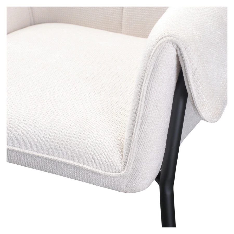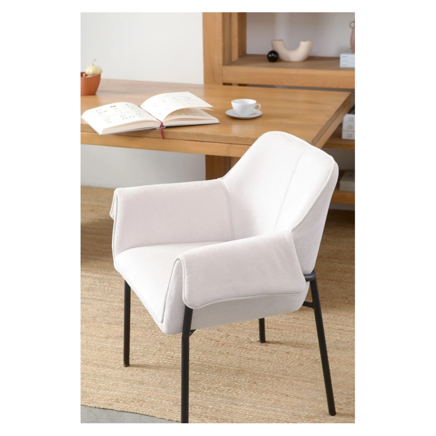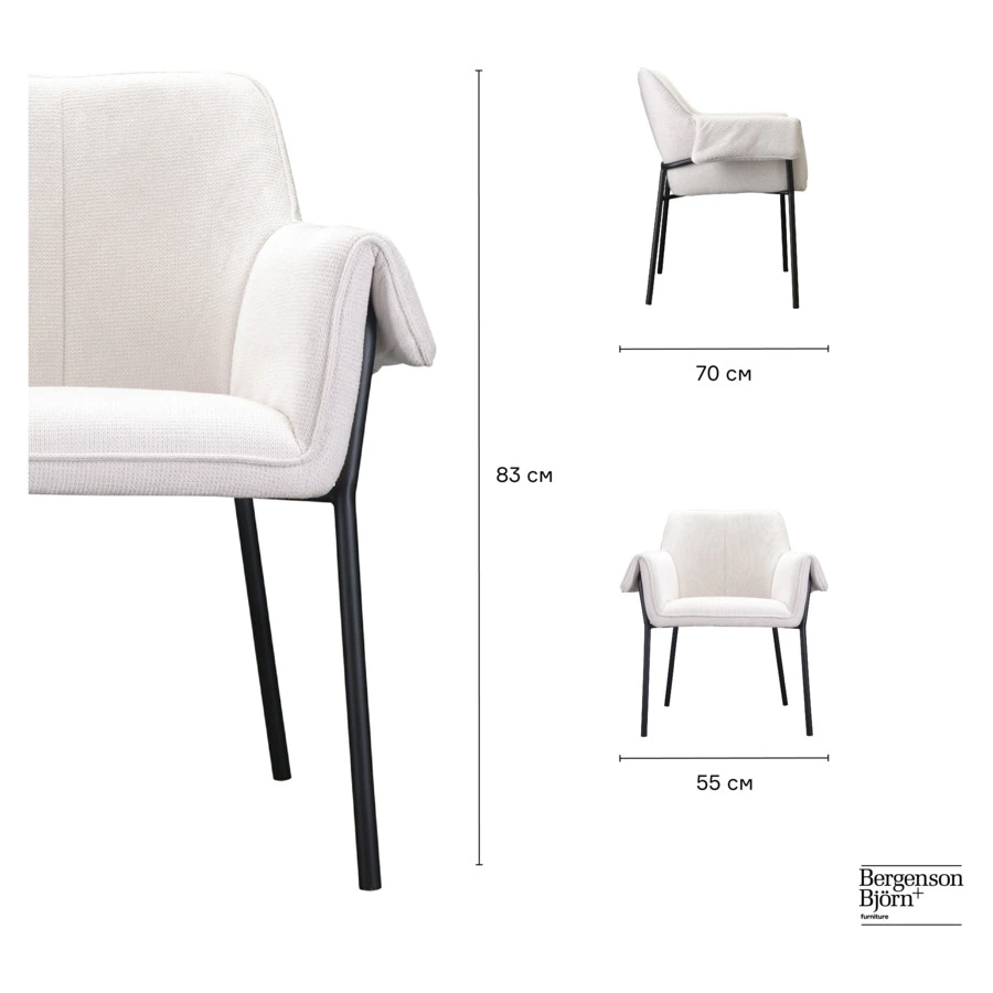 Материалы: 93% полиэстер, 7% нейлон, фанера, железо, поролон. Размеры: 70x55x83 см. Высота сиденья: 50 см. Ширина сиденья: 41 см. Глубина сиденья: 44 см. Высота спинки: 39 см. Ширина спинки: 42 см. Цвет: молочный. Истираемость ткани по шкале Мартиндейла ?40000.