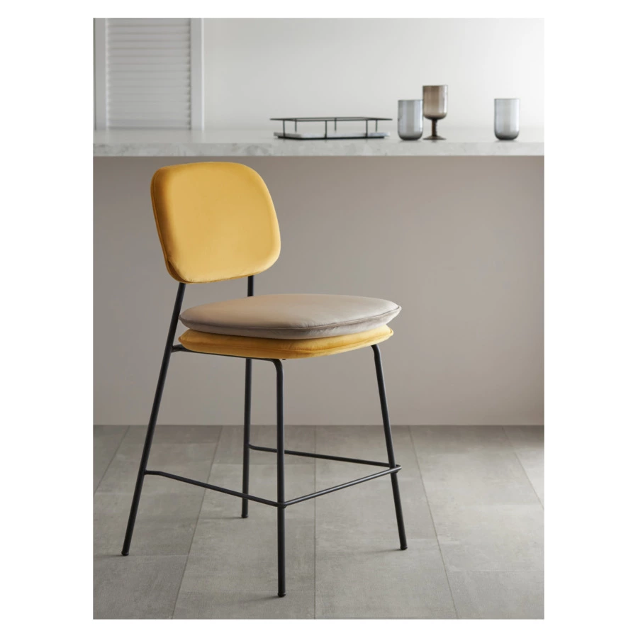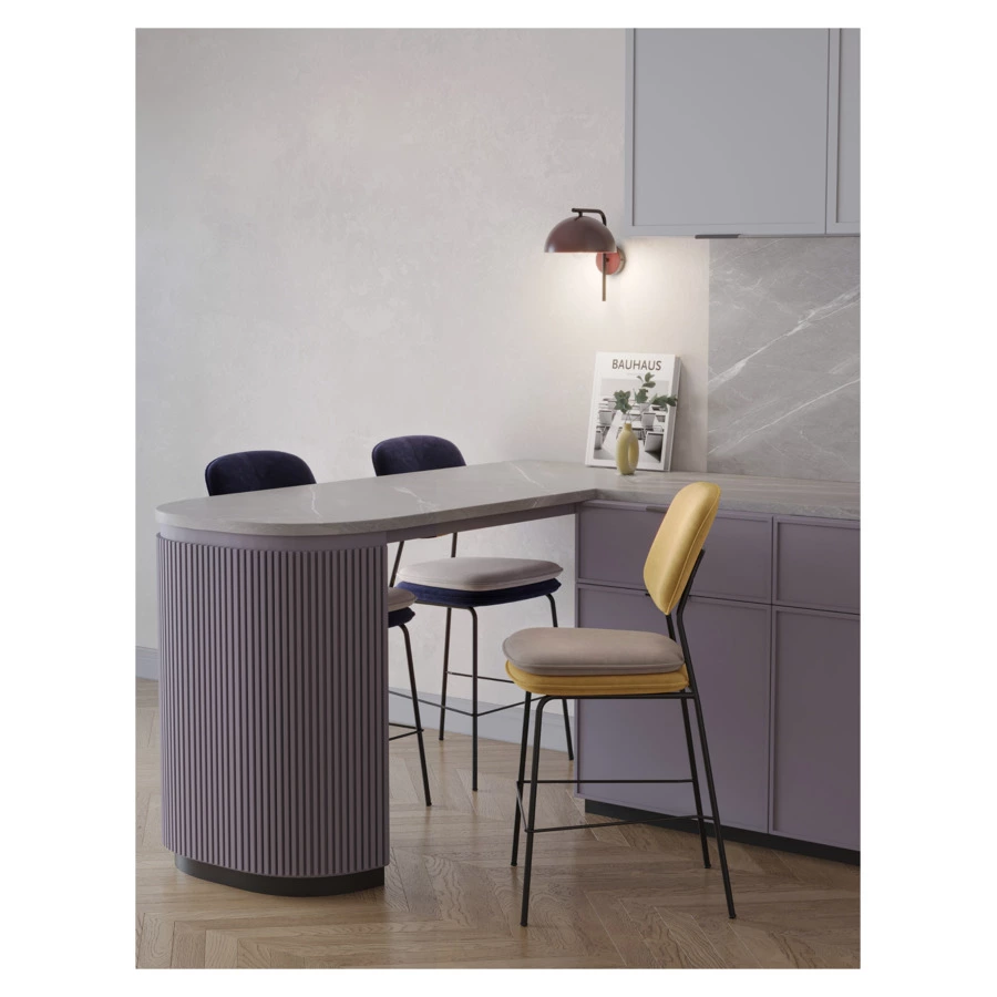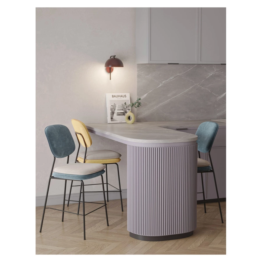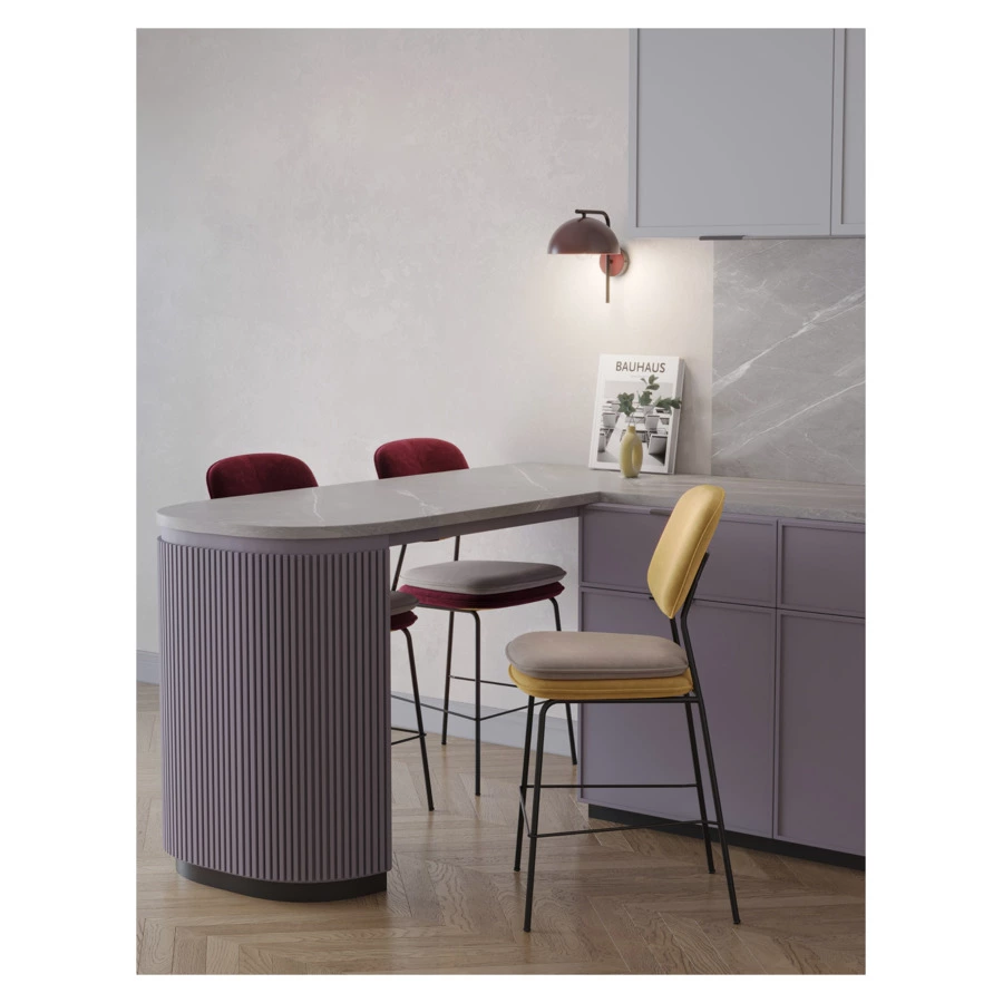 Стул полубарный Pea с контрастным кантом и мягкой обивкой из бархатистого велюра станет настоящим украшением интерьера и идеальным выбором для ценителей качественной и элегантной мебели.
