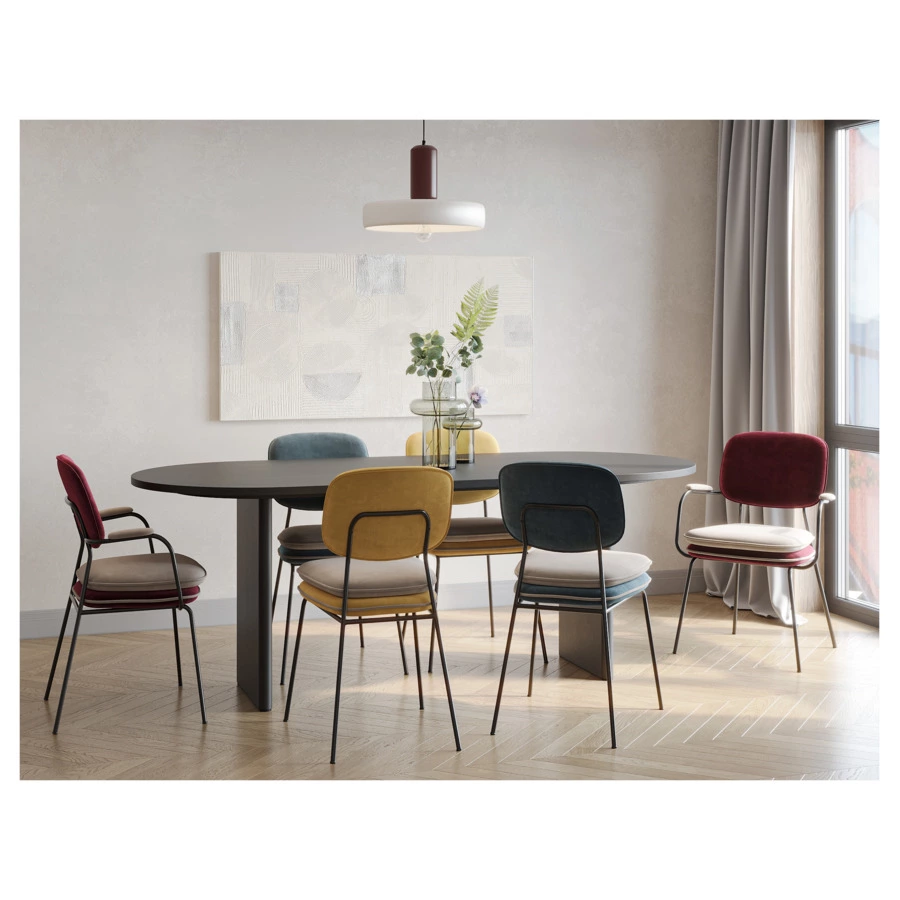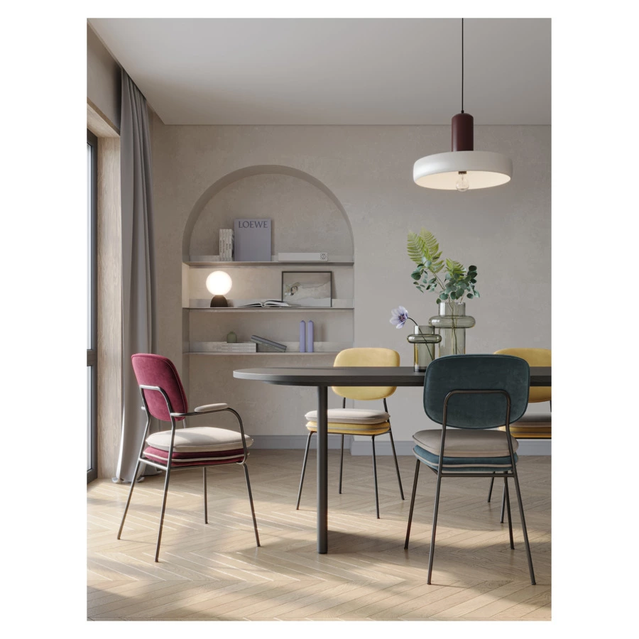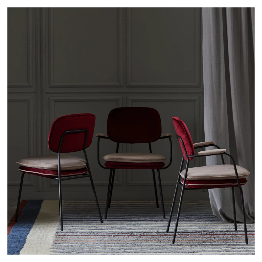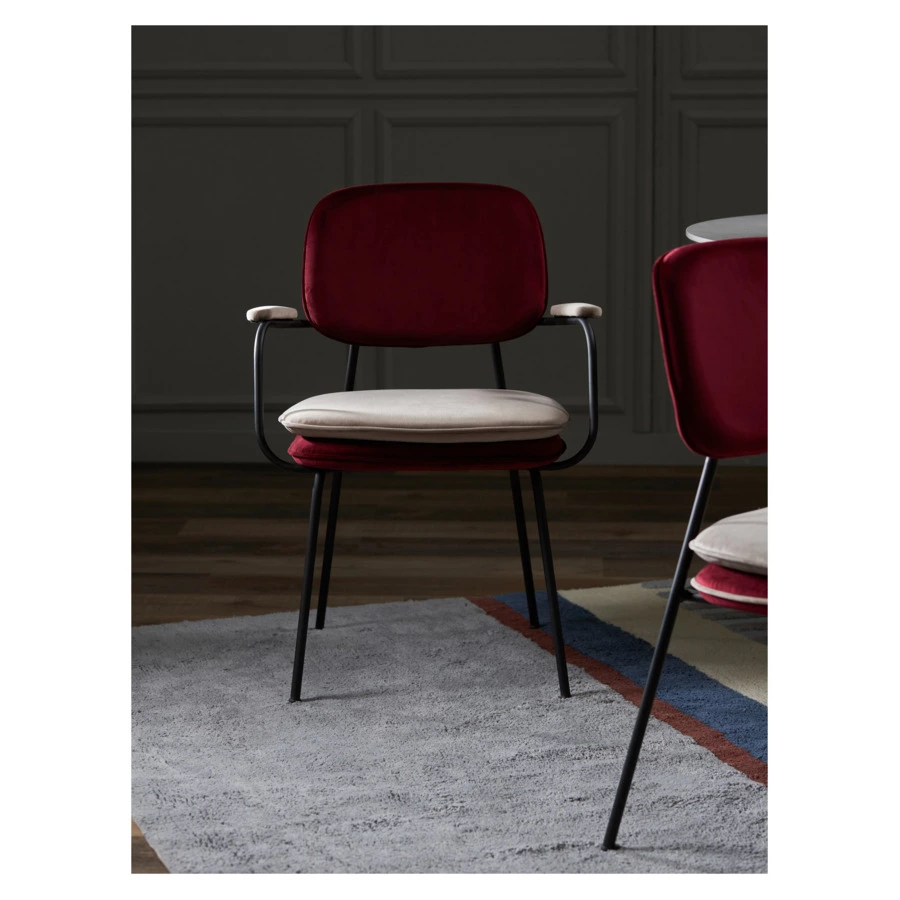 Стул Pea с подлокотниками и мягкой обивкой из бархатистого велюра станет настоящим украшением интерьера и идеальным выбором для ценителей качественной и элегантной мебели.