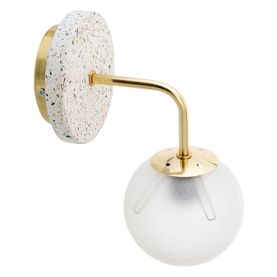 Материал: каменный композит терраццо, железо, стекло. Размеры: 32x15,5x22 см. Цвет: белый/золотой. Тип цоколя: Е27. Степень пылевлагозащиты: IP20. Максимальная мощность ламп: 25 Вт. Напряжение: 220-240 В. Площадь освещения: 1,7 кв.м. Лампы в комплекте: нет.