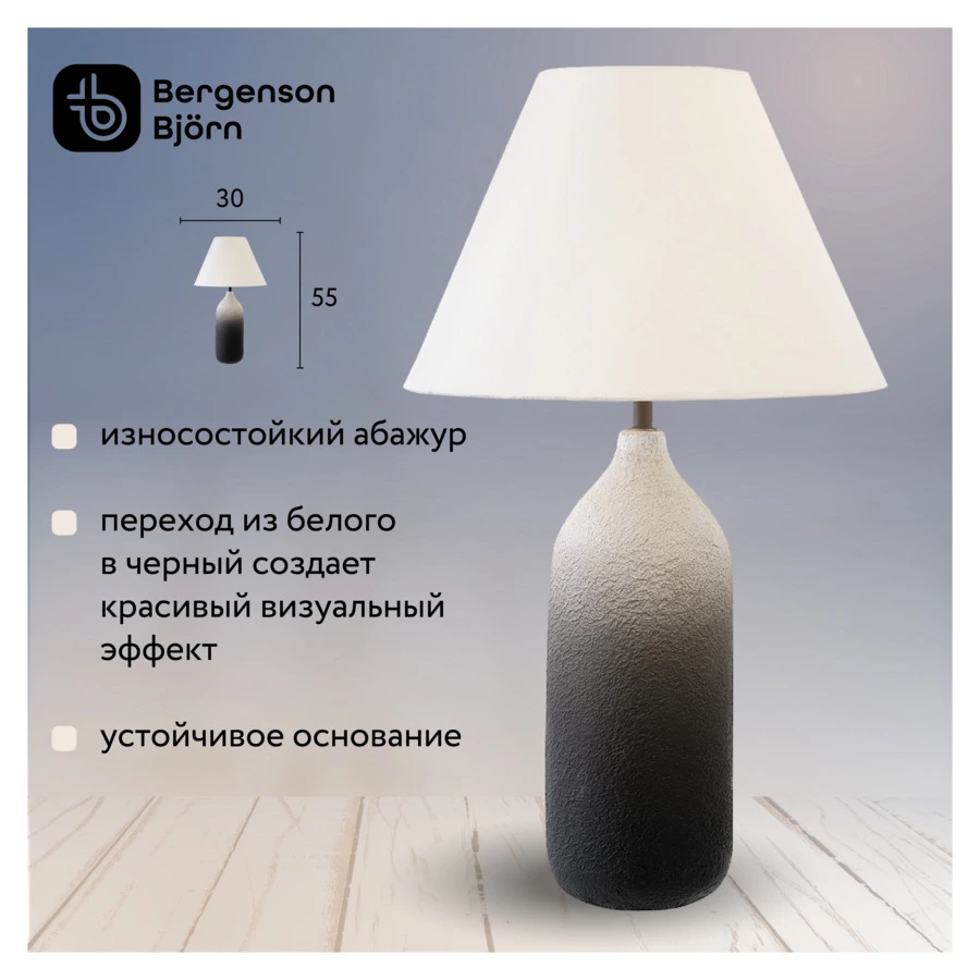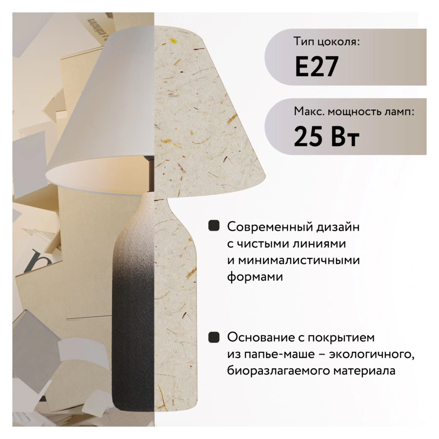 Материал: папье-маше, железо, хлопок. Размеры: 30х30х55 см. Цвет: черный/белый. Тип цоколя: Е27. Степень пылевлагозащиты: IP20. Максимальная мощность ламп: 25 Вт. Напряжение: 220-240 В. Длина провода: 2,5 м. Переключатель: встроенный. Площадь освещения: 1,7 кв.м. Лампы в комплекте: нет.