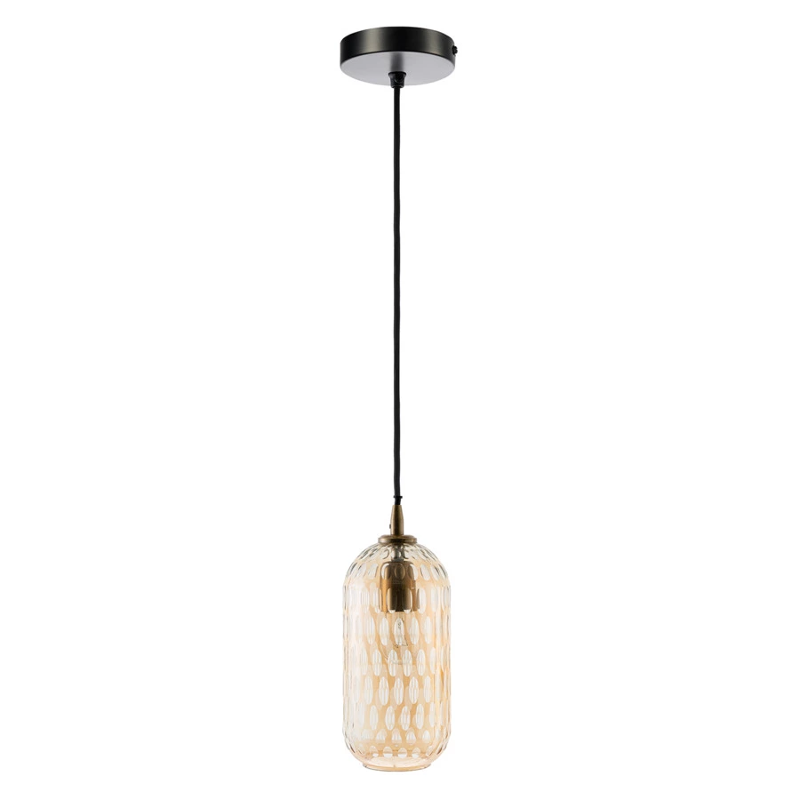 Материалы: стекло, железо. Размеры: 14х14х32 см. Цвет: янтарно-золотой. Длина провода: 1,5 м. Тип цоколя: Е27. Максимальная мощность ламп: 40 Вт. Степень пылевлагозащиты: IP20. Диаметр монтажной пластины: 11 см. Площадь освещения: 2,7 кв.м. Лампы в комплекте: нет.