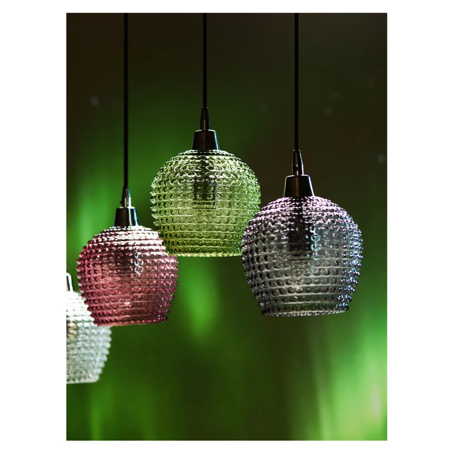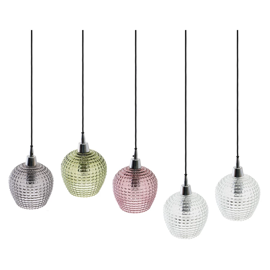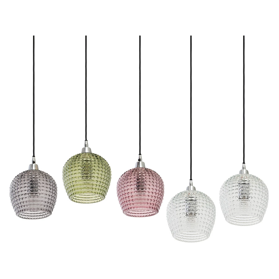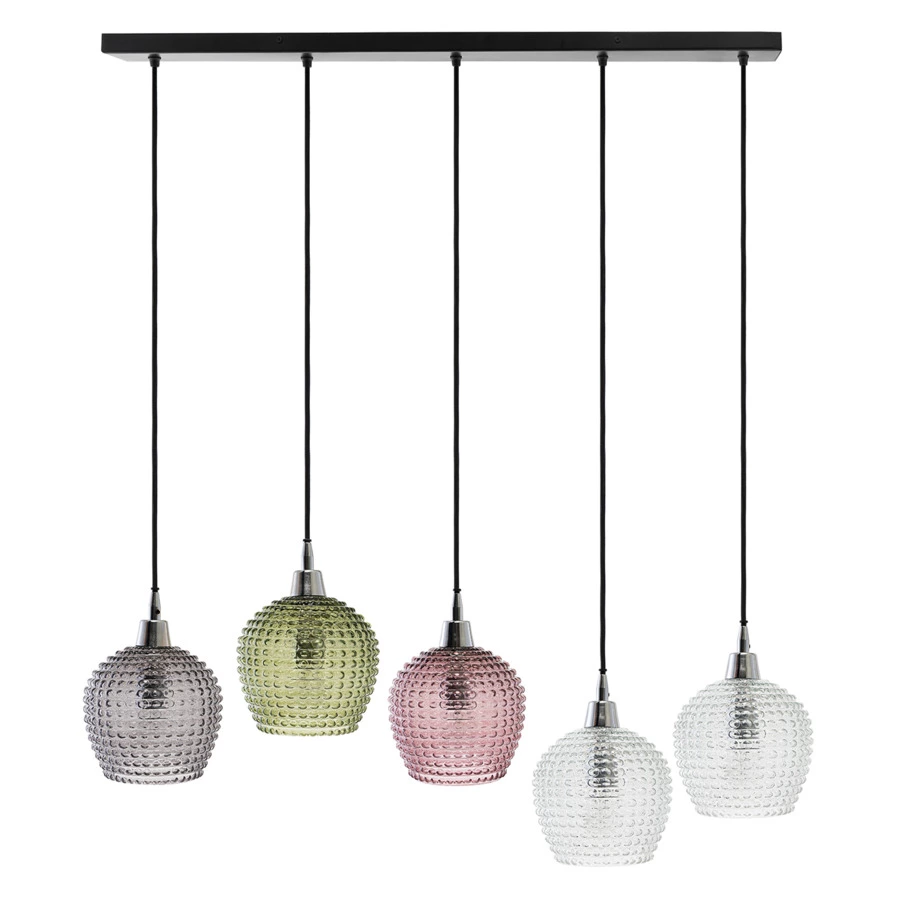 Материалы: стекло, железо. Размеры: 110х18х150 см. Цвет: сливовый/зеленый/серый. Длина провода: 1,1 м, 1,3 м, 1,5 м. Тип цоколя: 5хЕ27. Максимальная мощность ламп: 5х25 Вт. Степень пылевлагозащиты: IP20. Площадь освещения: 8,5 кв.м. Лампы в комплекте: нет.