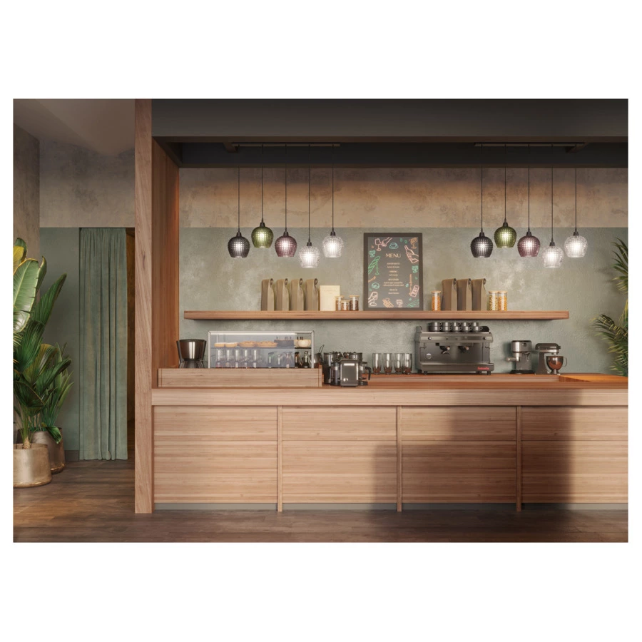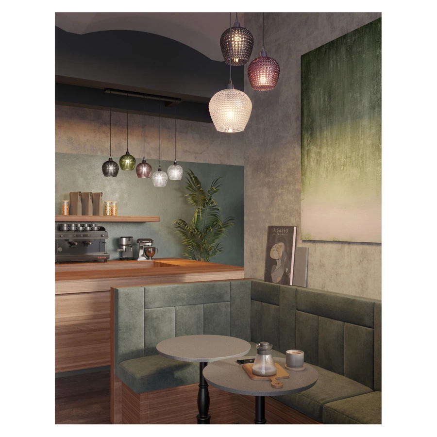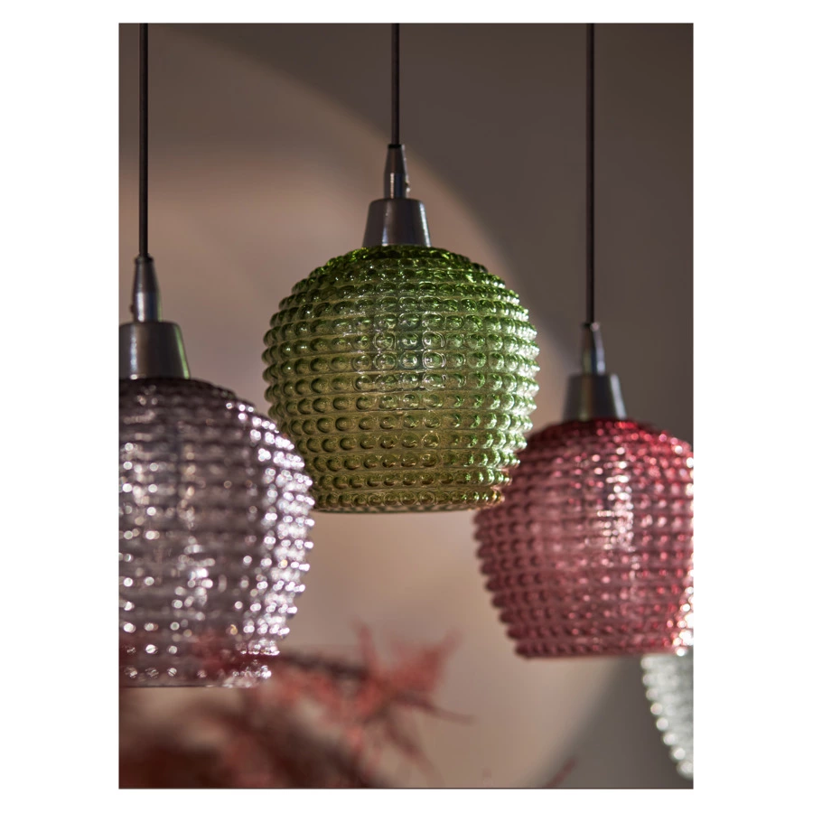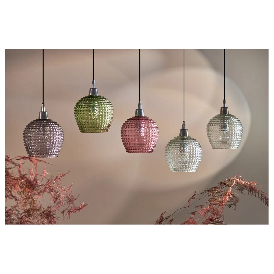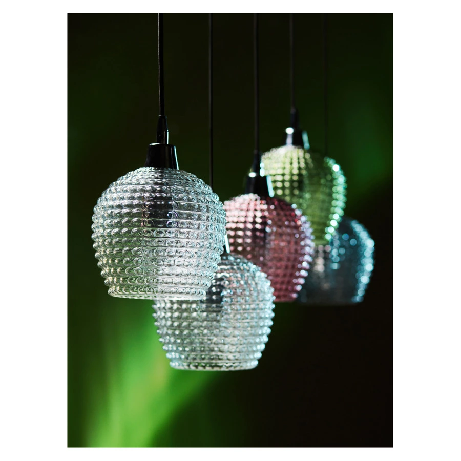 Материалы: стекло, железо. Размеры: 110х18х150 см. Цвет: сливовый/зеленый/серый. Длина провода: 1,1 м, 1,3 м, 1,5 м. Тип цоколя: 5хЕ27. Максимальная мощность ламп: 5х25 Вт. Степень пылевлагозащиты: IP20. Площадь освещения: 8,5 кв.м. Лампы в комплекте: нет.