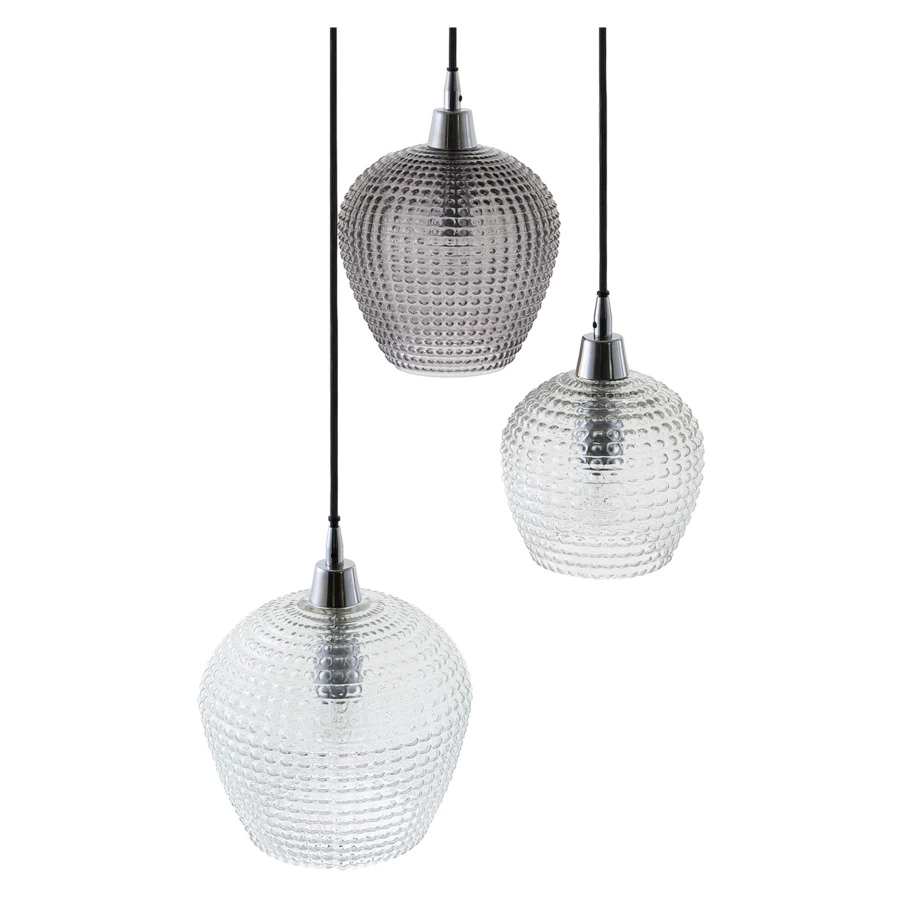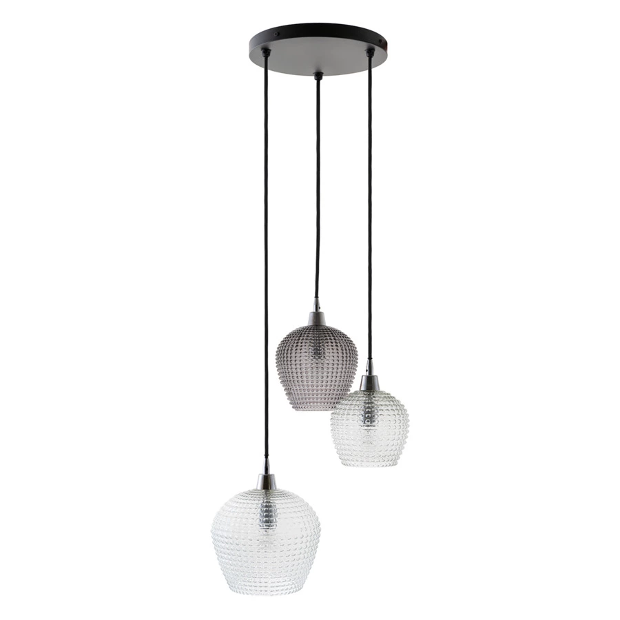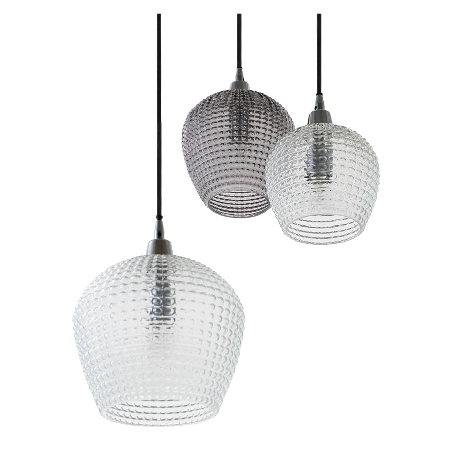 Материалы: стекло, железо. Размеры: 50х50х150 см. Цвет: серый/прозрачный. Длина провода: 1,1 м, 1,3 м, 1,5 м. Тип цоколя: 3хЕ27. Максимальная мощность ламп: 3х25 Вт. Степень пылевлагозащиты: IP20. Площадь освещения: 5 кв.м. Лампы в комплекте: нет.