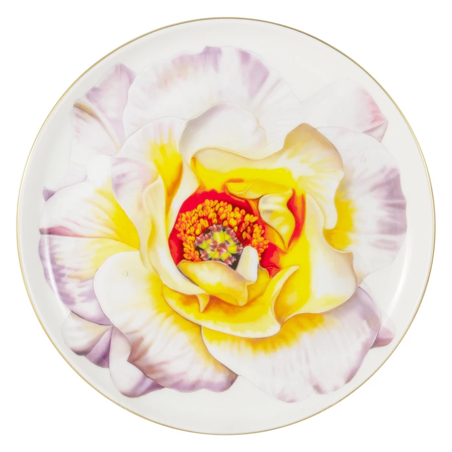 Тарелка выполнена из белоснежного костяного фарфора с ярким цветочным декором.