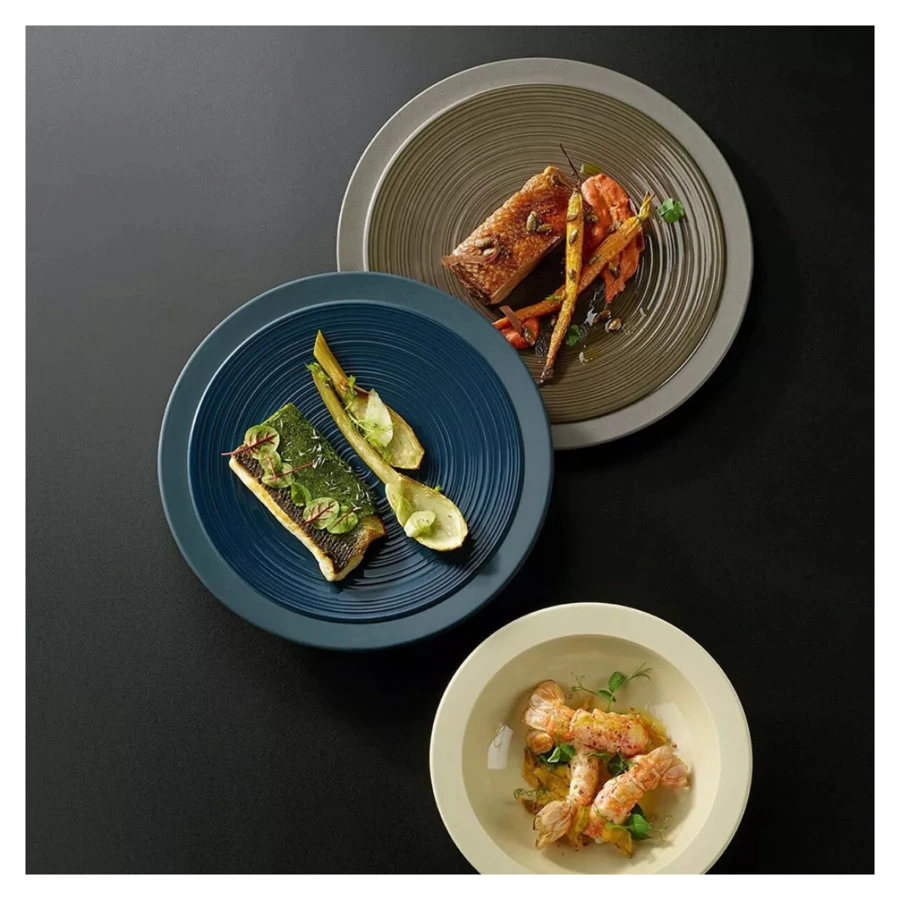 Коллекция Bahia от Degrenne – это гармоничное сочетание традиционных техник с новейшими трендами. Лаконичная, но вместе с тем эффектная посуда этой линейки органично впишется в современную сервировку. Дизайн предметов воплощает игру контрастов и фактур. Матовые чуть шероховатые поверхности сменяются глянцевой эмалью с рельефным рисунком в виде закрученного к центру вихря. Естественные оттенки серии отлично сочетаются с лаконичным исполнением тарелок, салатников, соусников, кувшинов и разделочных досок.