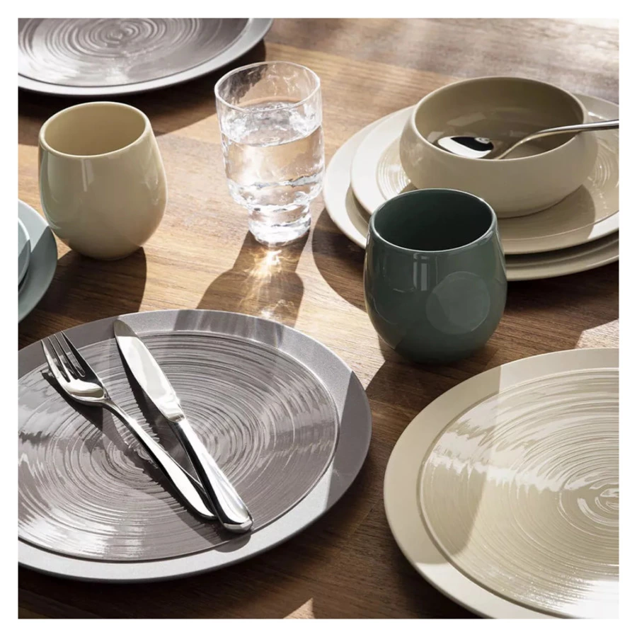Коллекция Bahia от Degrenne – это гармоничное сочетание традиционных техник с новейшими трендами. Лаконичная, но вместе с тем эффектная посуда этой линейки органично впишется в современную сервировку. Дизайн предметов воплощает игру контрастов и фактур. Матовые чуть шероховатые поверхности сменяются глянцевой эмалью с рельефным рисунком в виде закрученного к центру вихря. Естественные оттенки серии отлично сочетаются с лаконичным исполнением тарелок, салатников, соусников, кувшинов и разделочных досок.