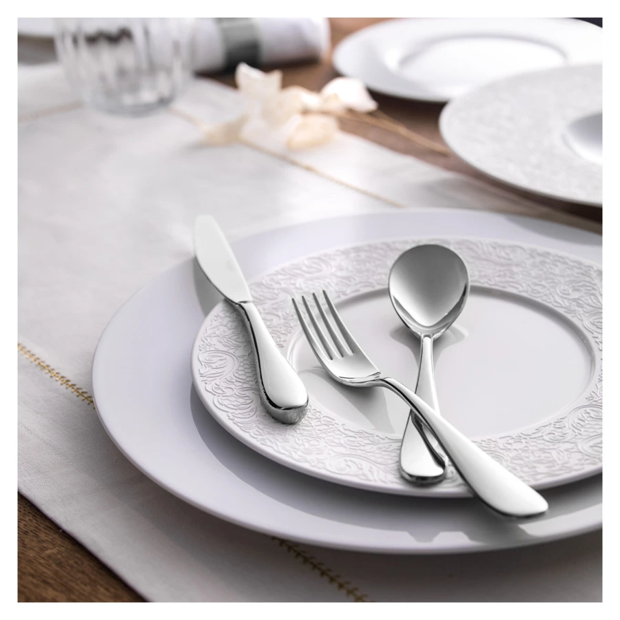 Дизайн коллекции L Couture вдохновлён утончёнными тканями роскошных нарядов от кутюр. Нежный кружевной узор выглядит объёмно благодаря матовому покрытию. Широкие бортики тарелок придают сервировке элегантность ресторанов высокой кухни. Коллекция представлена в белом и цвете слоновой кости.