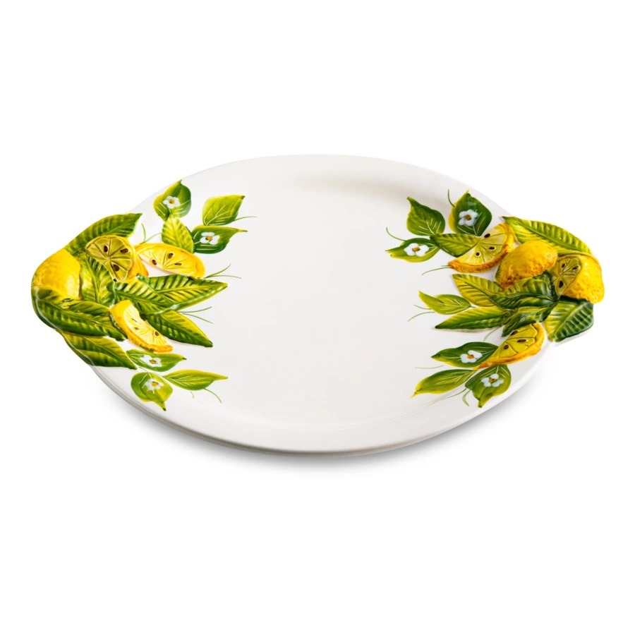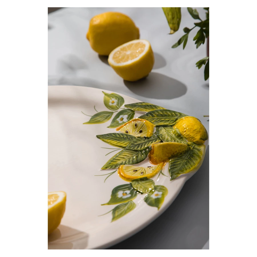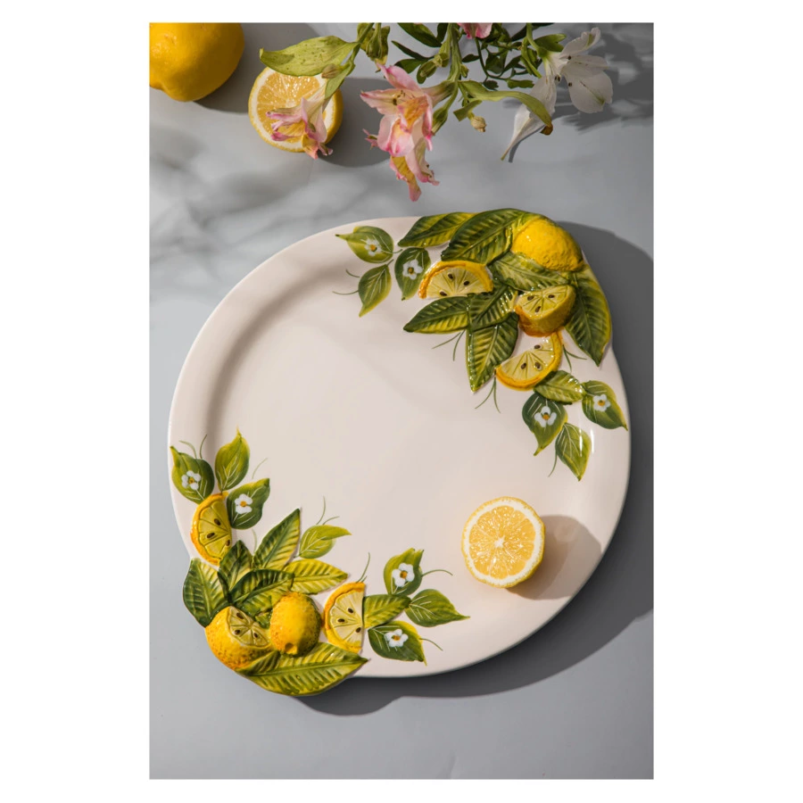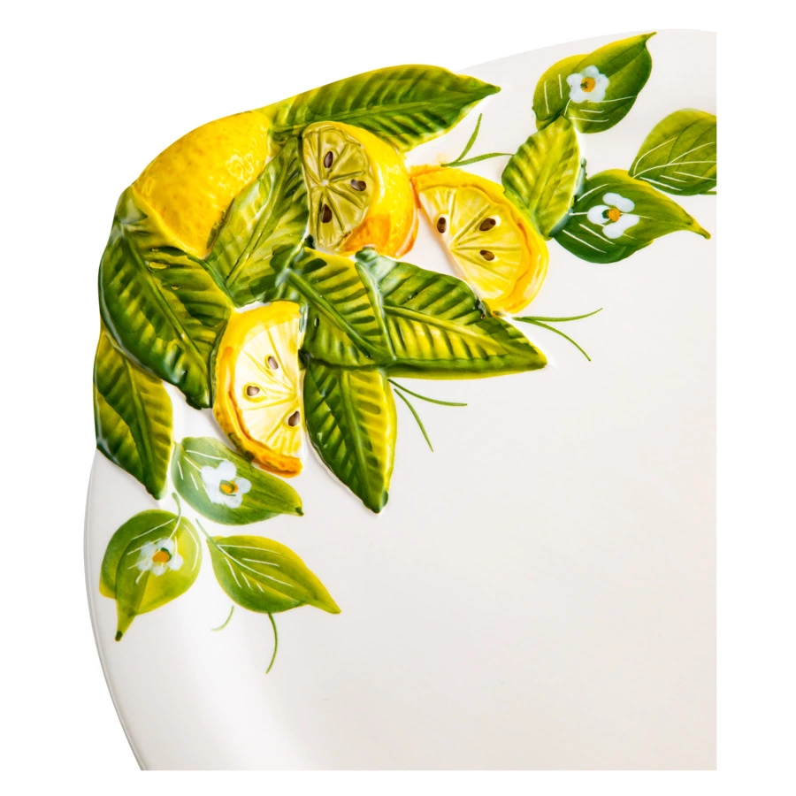 Обеденная тарелка из коллекции «Лимоны и цветы» отличается оригинальным красочным оформлением: яркость и сочность цитрусов, свежесть зелёных листьев и утончённость белых цветов создадут летнее настроение в вашем доме. Изделие диаметром 30,0 см изготовлено из керамики мастерами итальянской компании Edelweiss. Более 50 лет бренд создаёт посуду с уникальным дизайном, искусно сочетая современные тренды с традиционными технологиями производства.