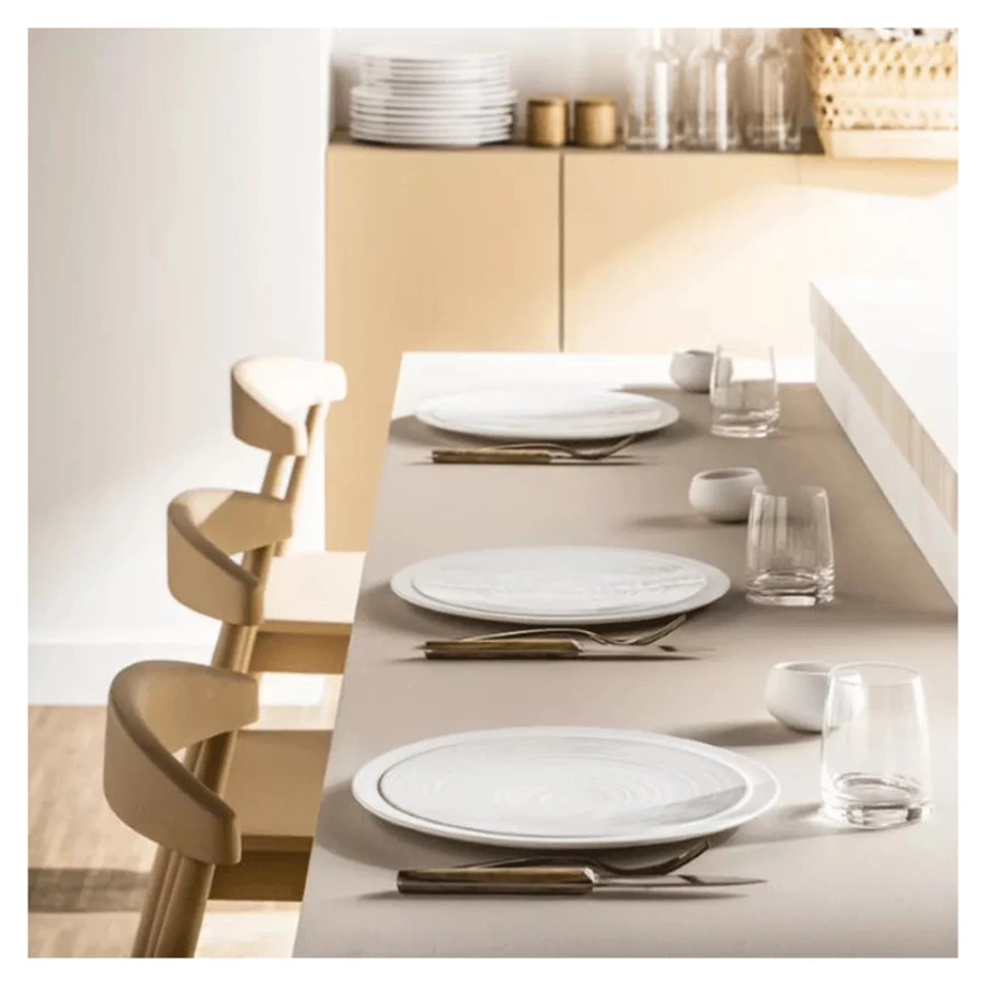 Коллекция Bahia от Degrenne – это гармоничное сочетание традиционных техник с новейшими трендами. Лаконичная, но вместе с тем эффектная посуда этой линейки органично впишется в современную сервировку. Дизайн предметов воплощает игру контрастов и фактур. Матовые чуть шероховатые поверхности сменяются глянцевой эмалью с рельефным рисунком в виде закрученного к центру вихря. Естественные оттенки серии отлично сочетаются с лаконичным исполнением тарелок, салатников, соусников, кувшинов и разделочных досок.