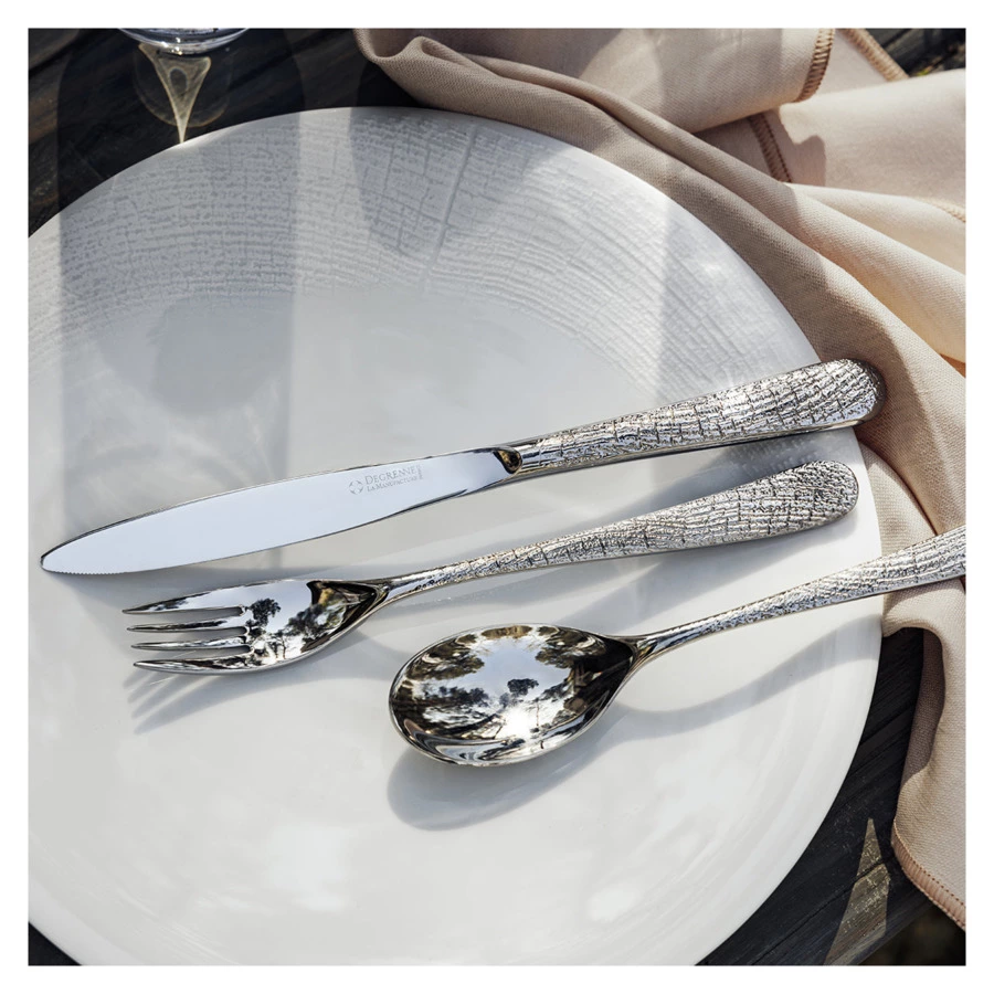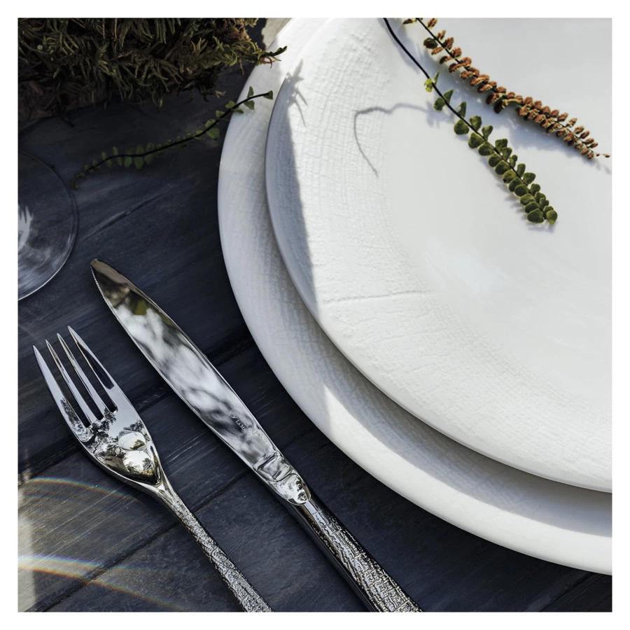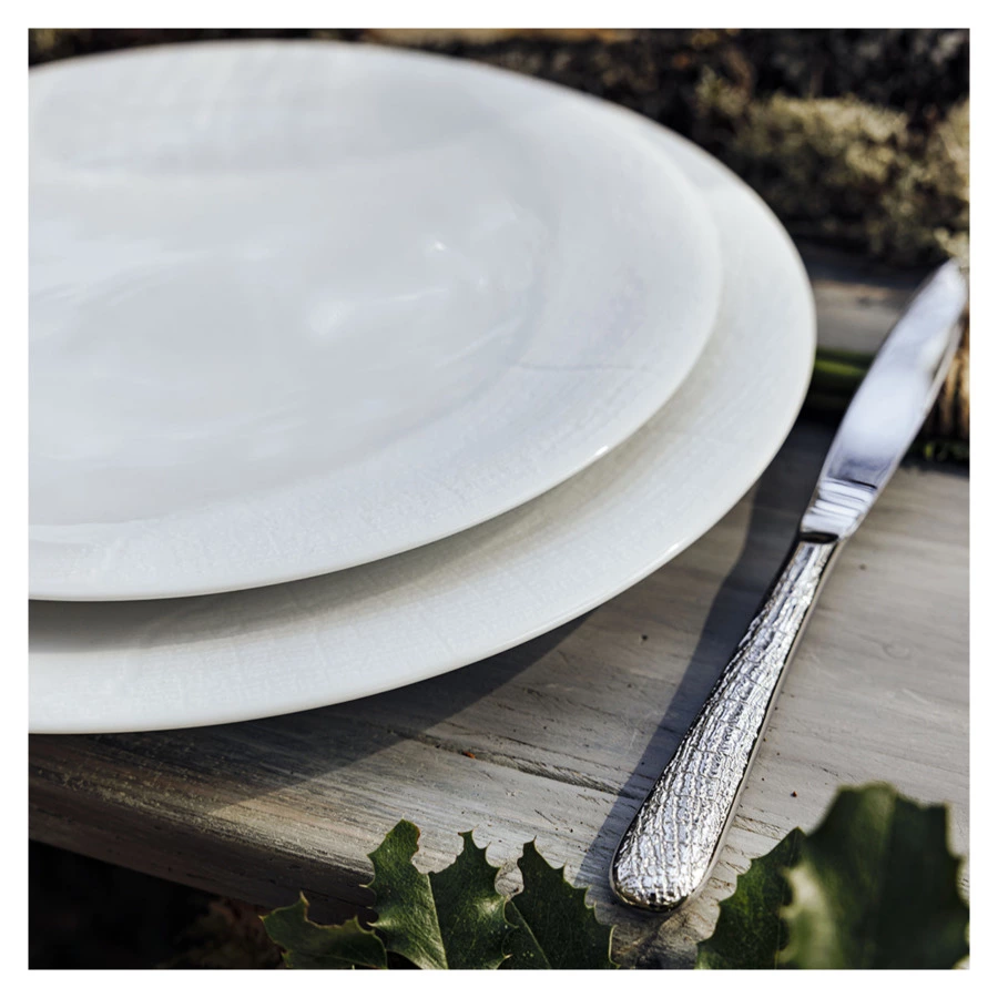 Коллекция Supernature от французского бренда Degrenne покорит всех поклонников натурального декоративного стиля. Белоснежный матовый фарфор служит фоном для необычного декора, представляющего собой отпечаток древесной коры. Он столь реалистичен, что невольно возникают сомнения в материале изготовления посуды. Текстурированная поверхность фарфора создает эффектный контраст с глянцевой отделкой тарелок, наиболее выгодно подчеркивая ваши любимые блюда.