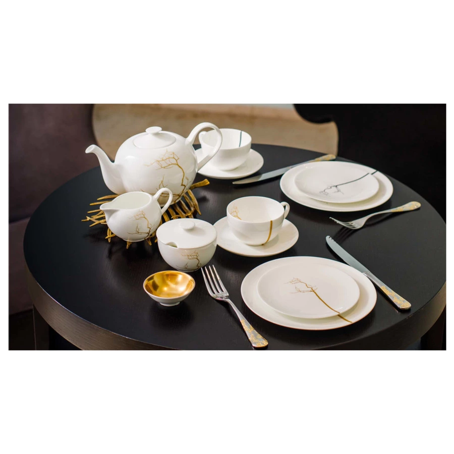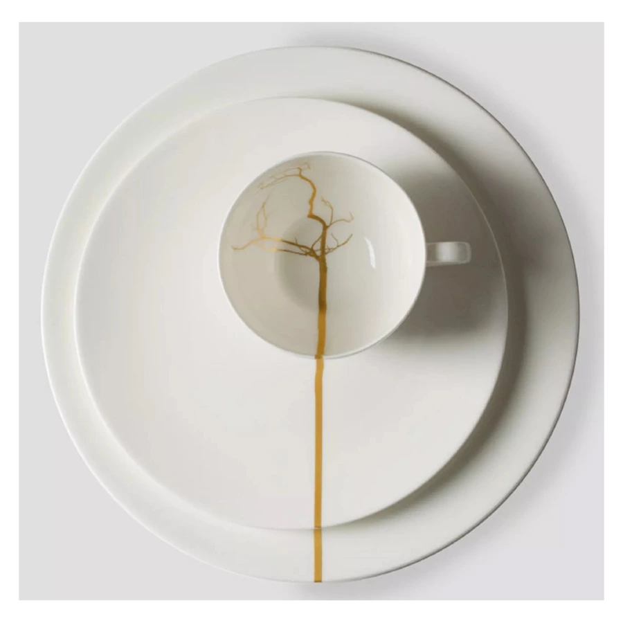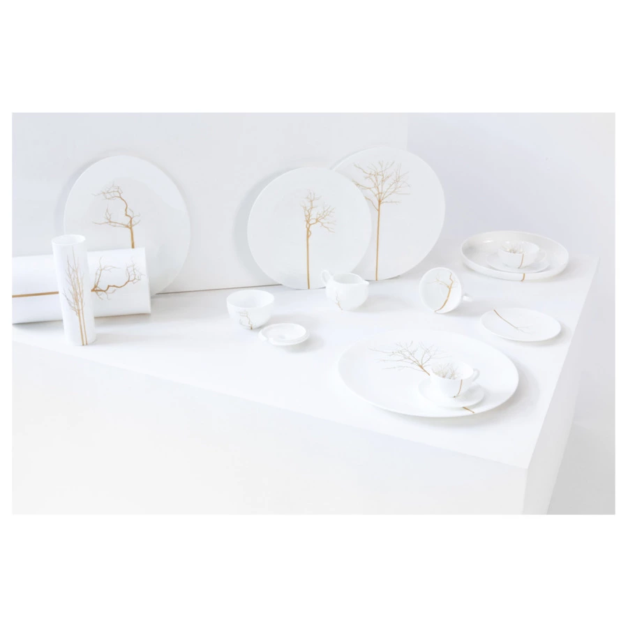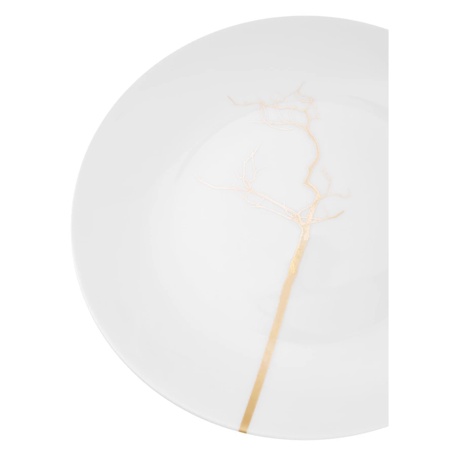Декор коллекции «Золотой лес» вдохновлен самой природой. Силуэты лишенных листвы деревьев выглядят словно абстрактные графические рисунки. Изделия серии имеют классические формы и минималистичный дизайн, белоснежный глянец поверхности и шелковистый блеск золотой отделки. Роскошная столовая посуда, несмотря на свое великолепие, предназначена для повседневного использования. Все предметы служат идеальным дополнением друг друга и комбинируются с другими линейками бренда.