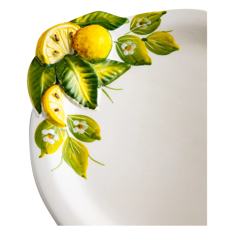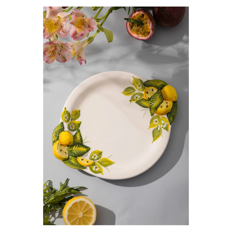 Закусочная тарелка бренда Edelweiss из коллекции «Лимоны и цветы» изготовлена в Италии. Предмет округлой формы с вытянутыми бортиками выполнен из экологически чистой керамики. По краям изделие украшает фактурная лепнина с ручной росписью. Объёмное изображение лимонных ветвей с плодами и цветами поражает искусной проработкой мельчайших деталей. Посуда с эффектным дизайном подойдёт и для повседневной сервировки стола, и для особого случая.