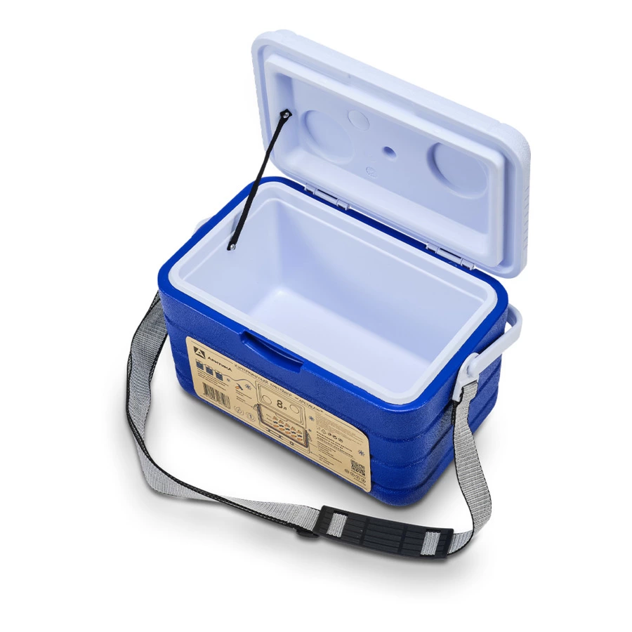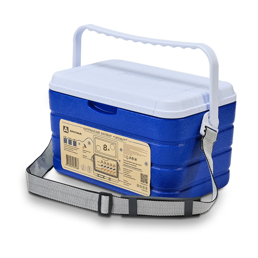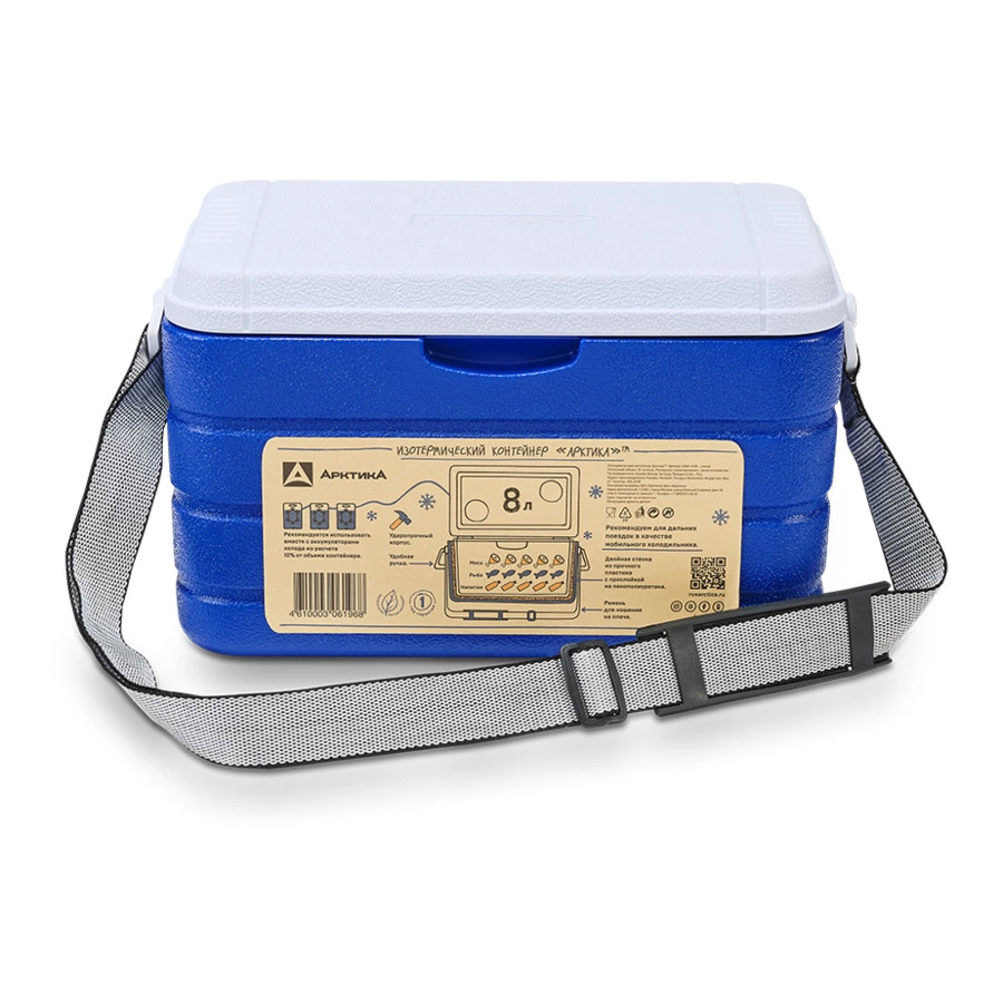 Изотермический контейнер, объем 8 л, с ручкой для переноски и ремнем для ношения на плече. Внутренние размеры 30х17х16. Двойная стенка из ударопрочного материала с прослойкой из пенополиуретана. Ударопрочный корпус.