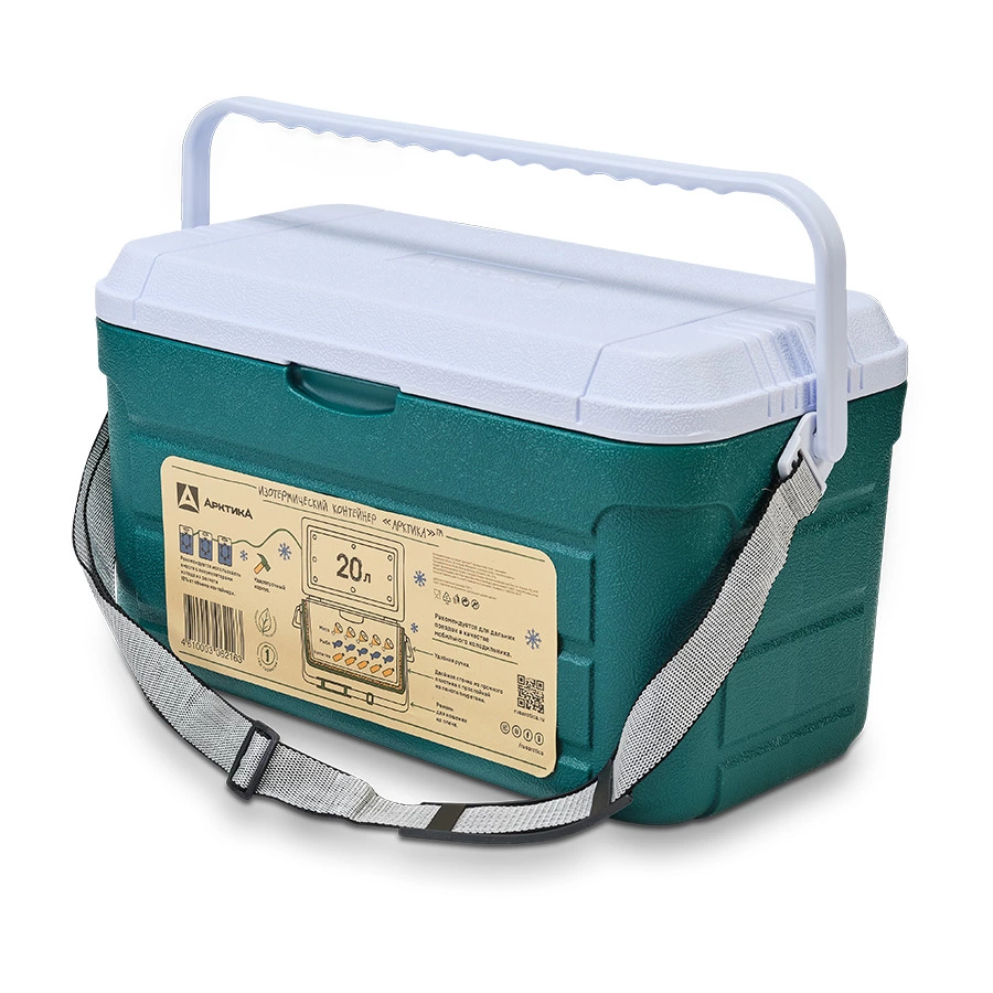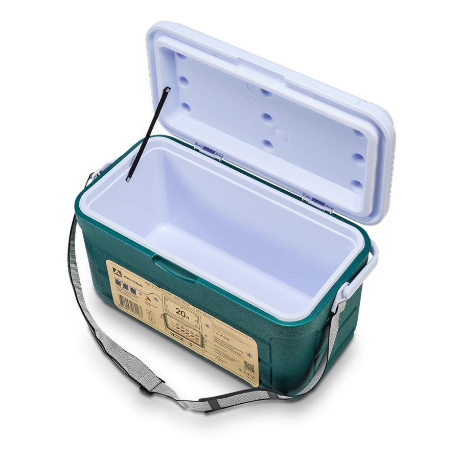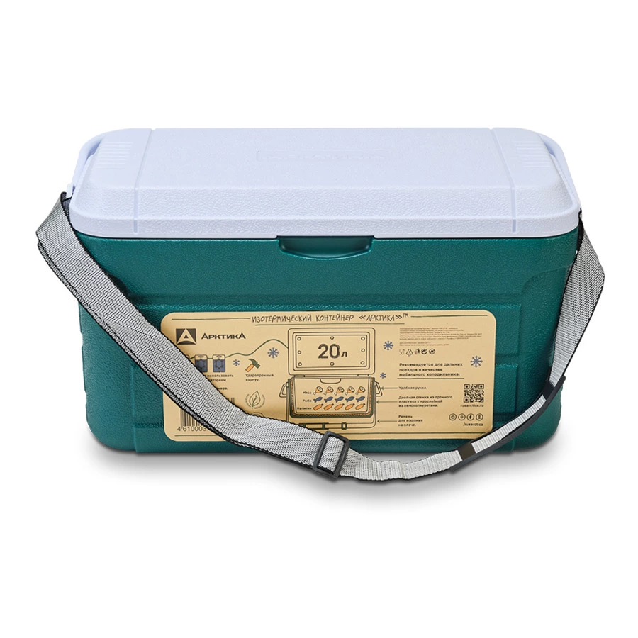 Изотермический контейнер, объем 20 л, с ручкой для переноски и ремнем для ношения на плече. Внутренние размеры 45х21х22. Двойная стенка из ударопрочного материала с прослойкой из пенополиуретана. Ударопрочный корпус.