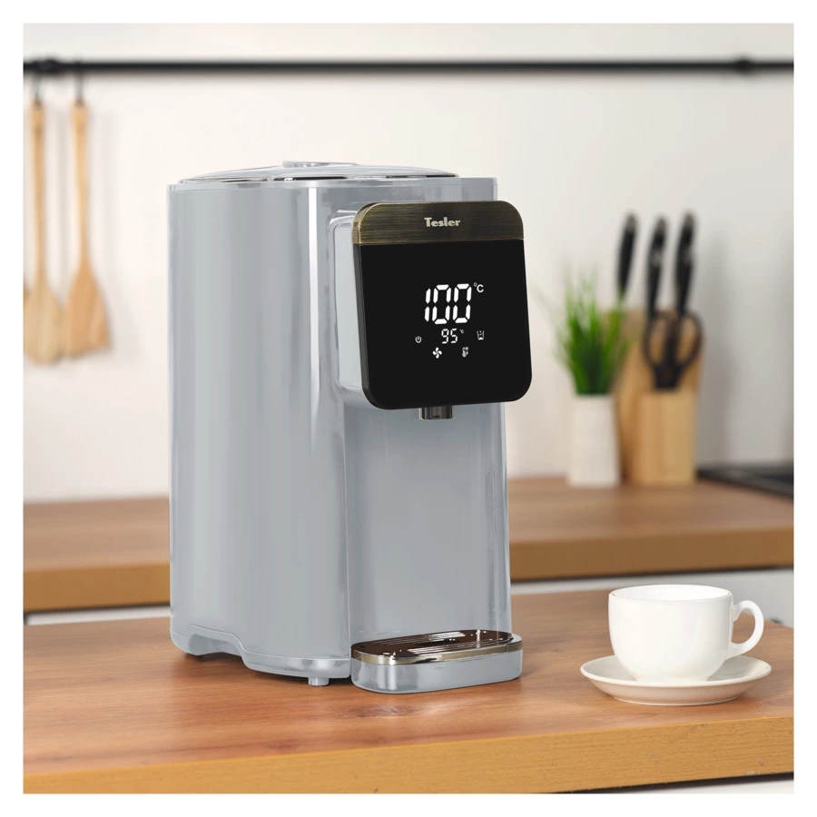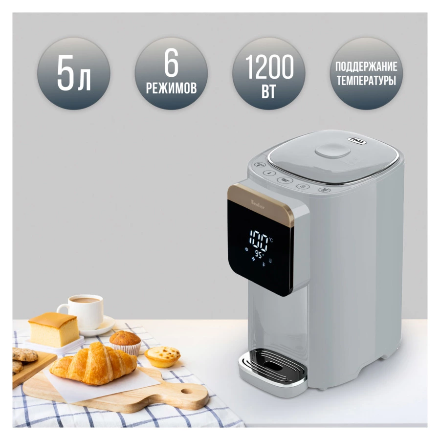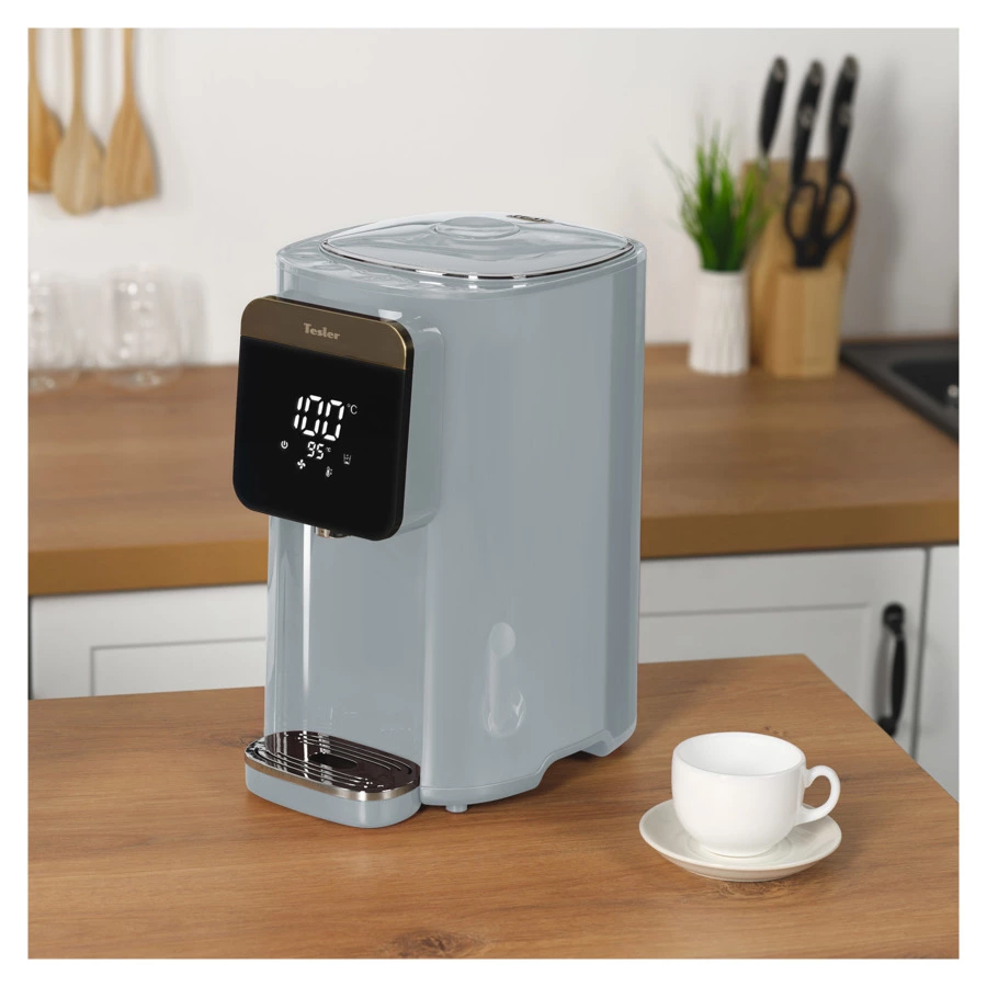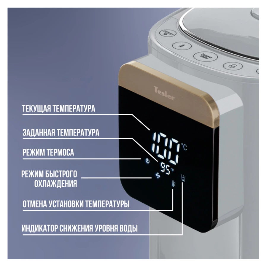 Термопот Tesler Margherita TP-5045 не только кипятит воду, но и нагревает её до одного из шести предустановленных значений (95, 85, 75, 65, 55, 45 градусов). Выбранная температура поддерживается постоянно.