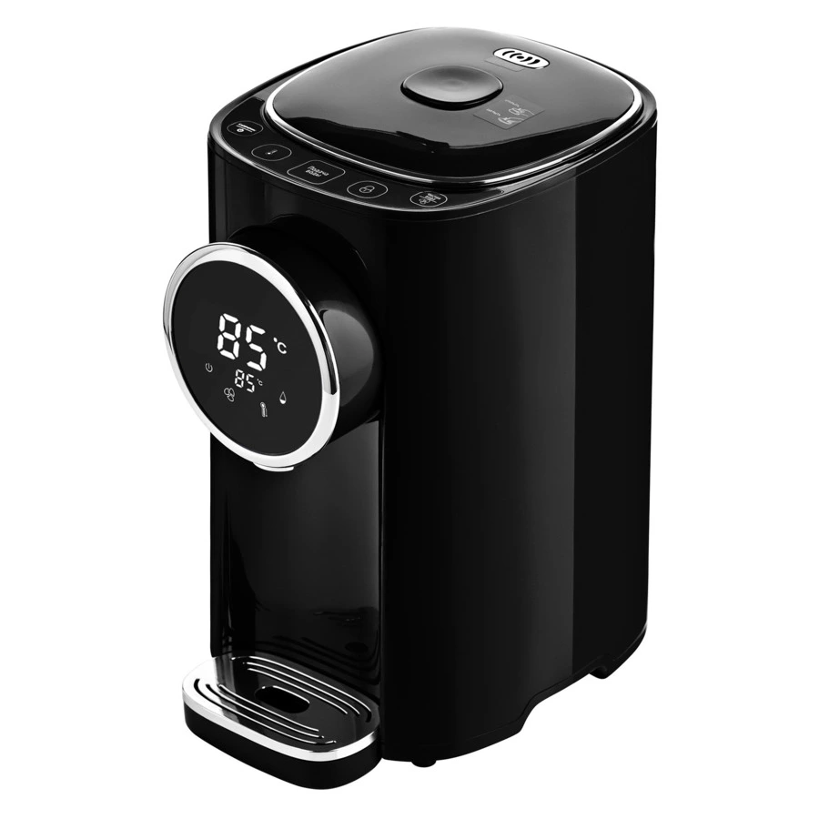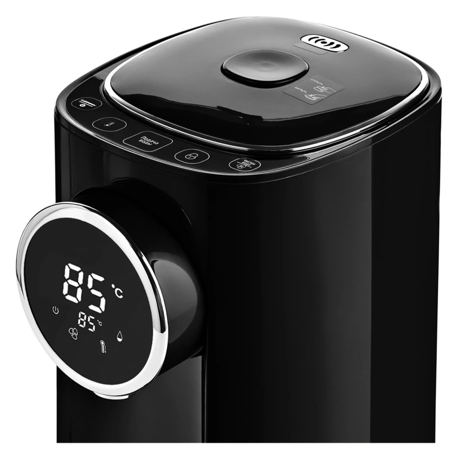Объем воды 5 литров закипает быстро благодаря высокой мощности в 1200 Вт. Информативный дисплей покажет вам не только заданный режим, но и температуру в режиме реального времени. Когда вода внутри колбы будет заканчиваться – термопот сам оповестит вас с помощью сигнала. При необходимости подачу воды можно заблокировать.